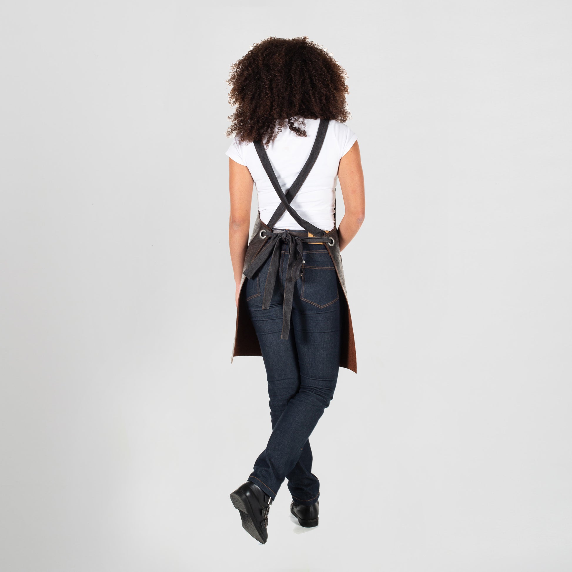 Elegancia sostenible con nuestro Delantal con Peto Arabia, una pieza excepcional de ropa laboral confeccionada en PIEL 100% reciclada. Este delantal no solo ofrece durabilidad y estilo, sino que también respalda la sostenibilidad con su compromiso con materiales reciclados.