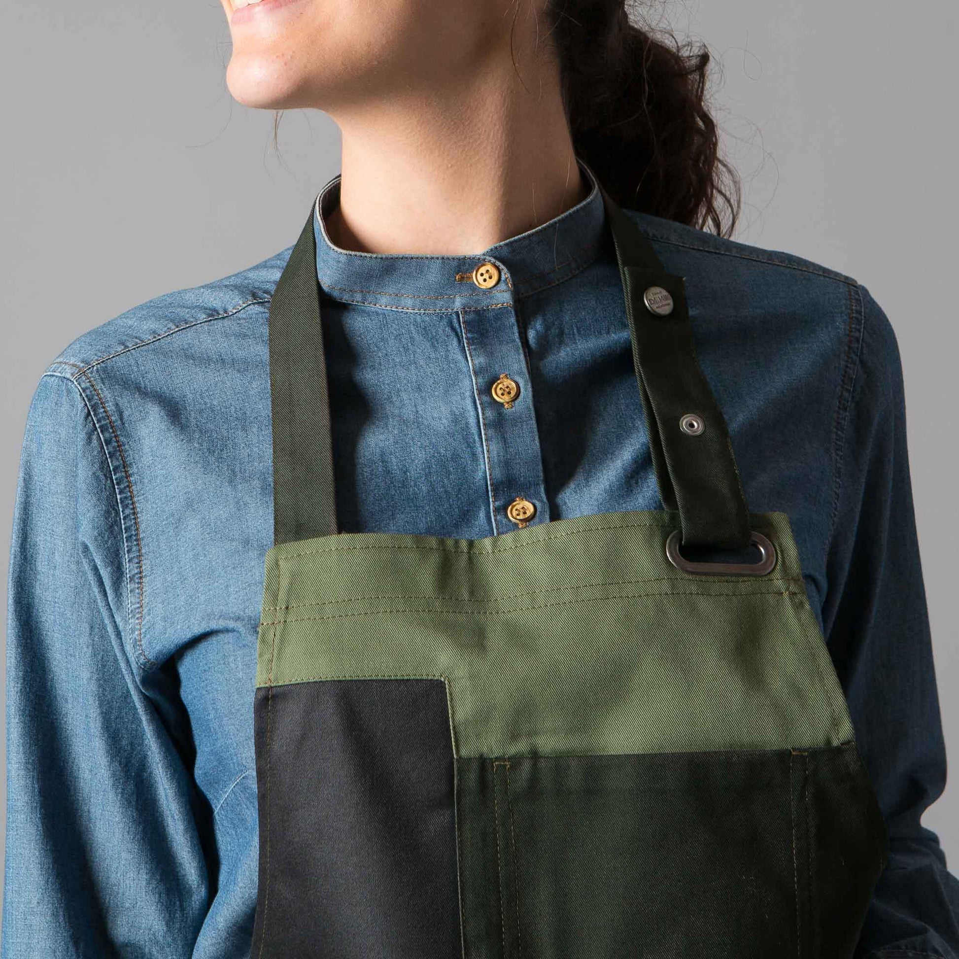El sistema de cierre de la tira del peto en el lado izquierdo con botón de presión asegura un ajuste cómodo y rápido, optimizando la eficiencia en entornos laborales dinámicos. Equipado con dos bolsillos, este delantal proporciona espacio adicional para llevar consigo herramientas esenciales durante la jornada de trabajo.