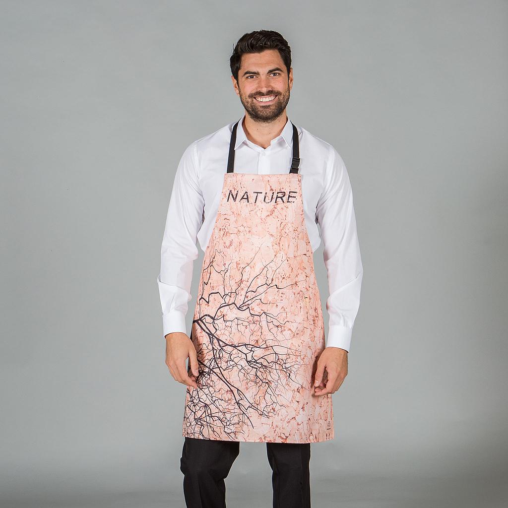 Encuentra la moda sostenible con nuestro Delantal con Peto Estampado Tejido Reciclado de 80x68 centímetros, una joya ecológica dentro de nuestra línea NATUREWEAR en Uniformes Gary's. Confeccionado en sarga de 100% poliéster reciclado, este delantal no solo aporta estilo a tu uniforme, sino que también refleja nuestro compromiso con la sostenibilidad ambiental.