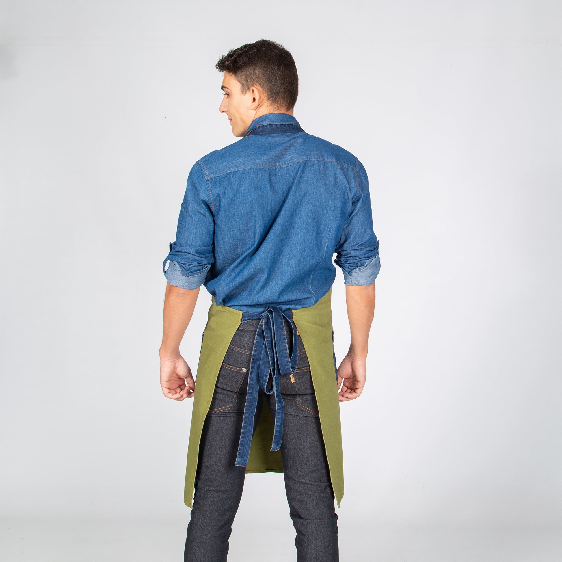 Este delantal está diseñado para resistir las demandas del entorno laboral en la industria de la hospitalidad. Los materiales de alta calidad y el diseño resistente aseguran que mantendrá su aspecto impecable incluso después de numerosos lavados y jornadas de servicio.
