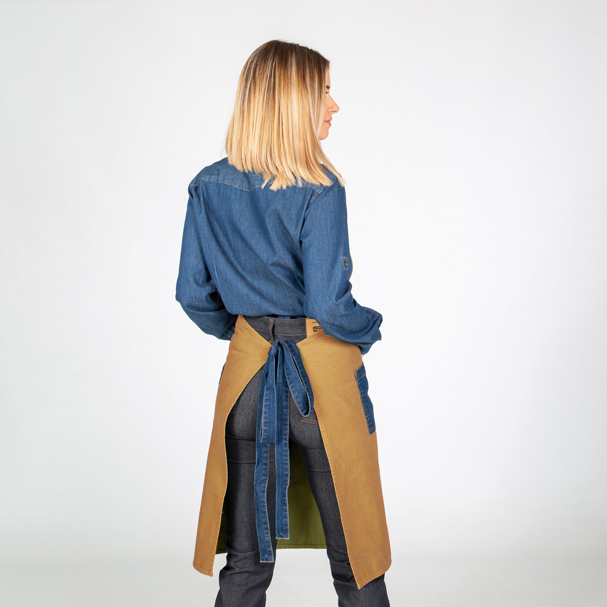 DELANTAL CON PETO LAVADO SARGA COMBI TEJANO AÑIL 80X85 CM "RED LINE"