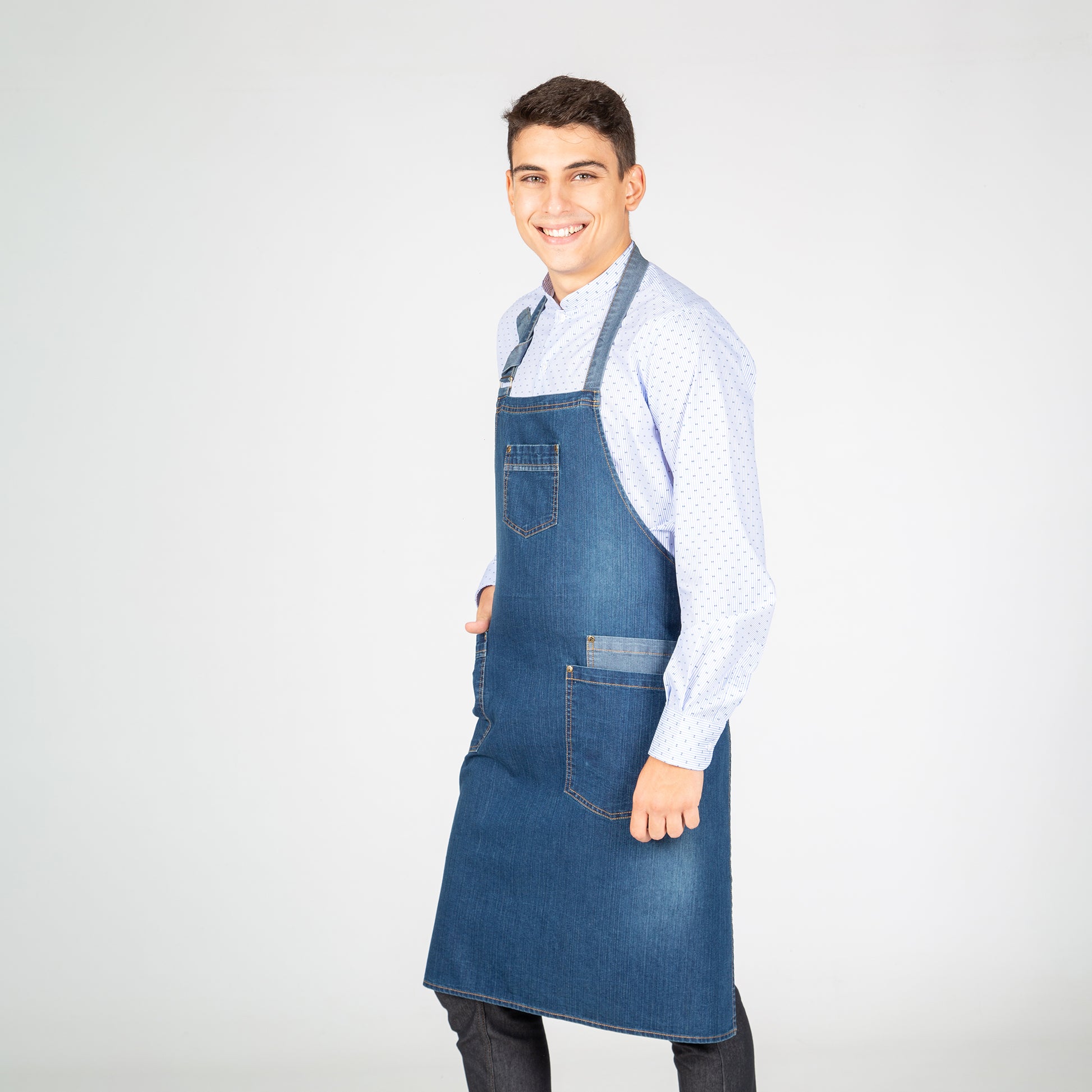 Este delantal con peto lavado en tejano añil es parte de nuestra prestigiosa gama REDLINE, lo que garantiza la más alta calidad y un diseño único. La original combinación del tejido al revés en los bolsillos añade un toque auténtico y distintivo a este delantal, destacando su compromiso con la excelencia en el servicio.