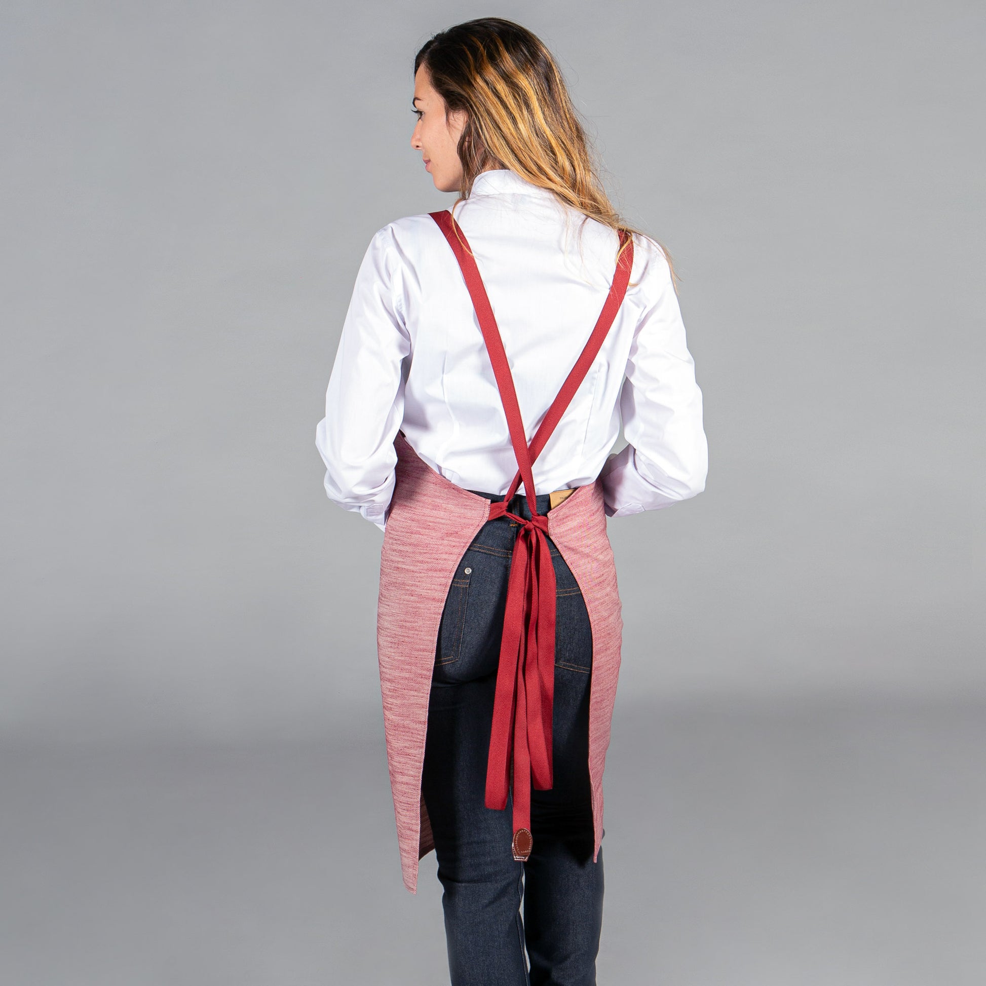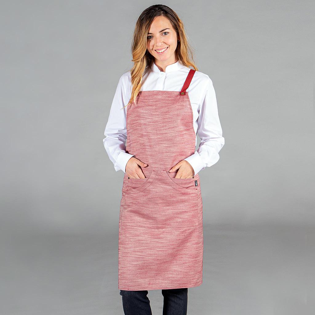 Equipado con tres bolsillos delanteros, este delantal ofrece funcionalidad sin comprometer el estilo. El sistema de cierre con tiras cruzadas desde el peto hacia los costados no solo garantiza un ajuste personalizado, sino que también añade un toque de distinción al uniforme.