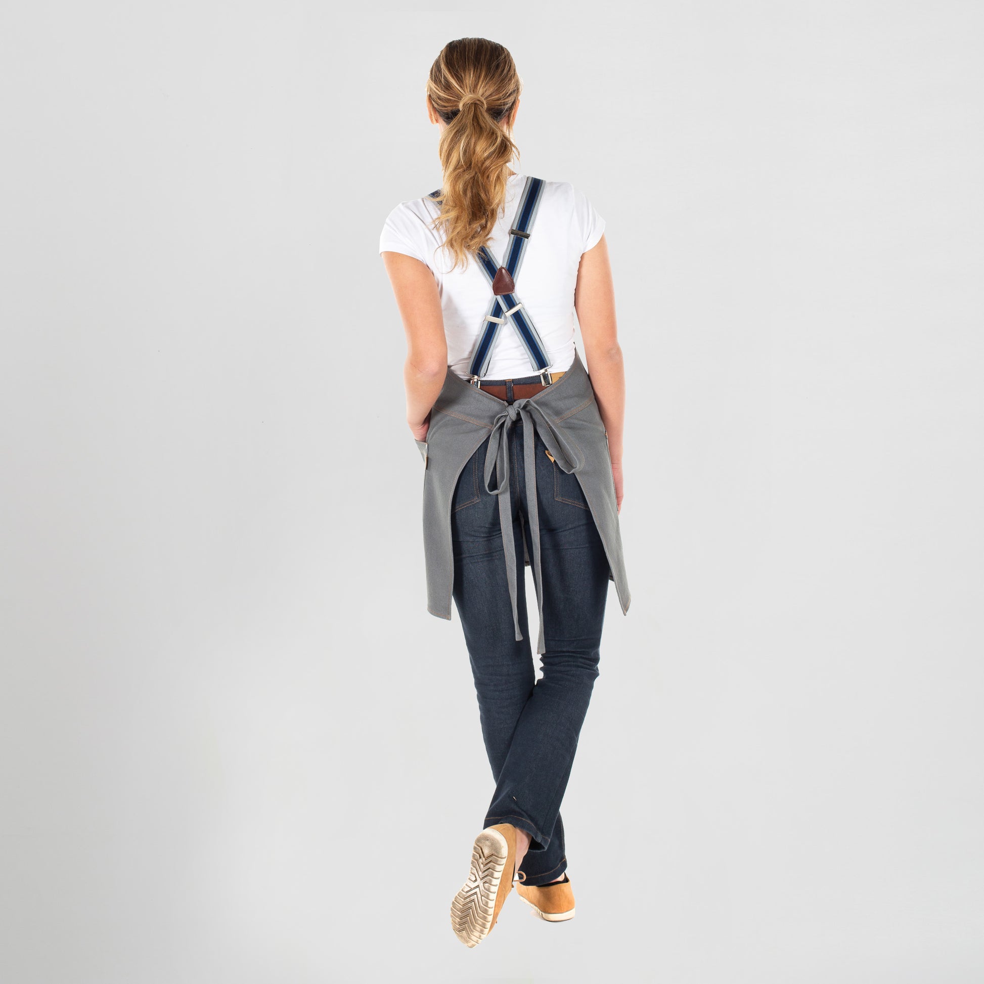 Las cintas para anudar en la cintura, fabricadas con el mismo tejido resistente, aseguran un ajuste cómodo y personalizado. Los tirantes para el peto, disponibles en varios colores, permiten a los usuarios personalizar su apariencia y destacar en su profesión.
