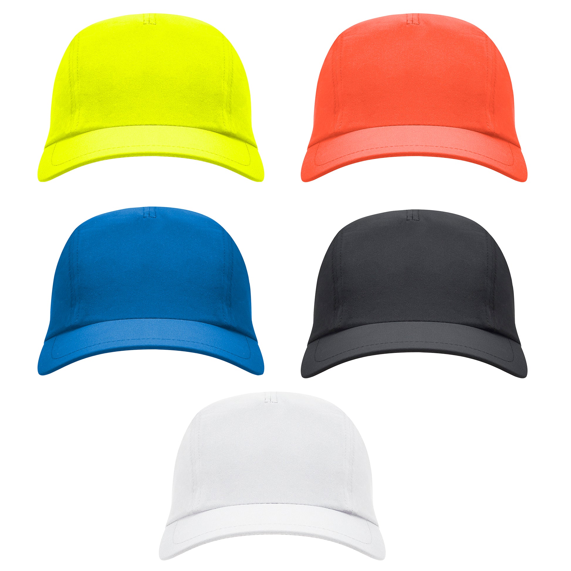 Gorra técnica de tres paneles. Tejido ligero y transpirable. Cierre ajustable de velcro en la parte posterior. Frontal especial para reprocesos. 70-20R