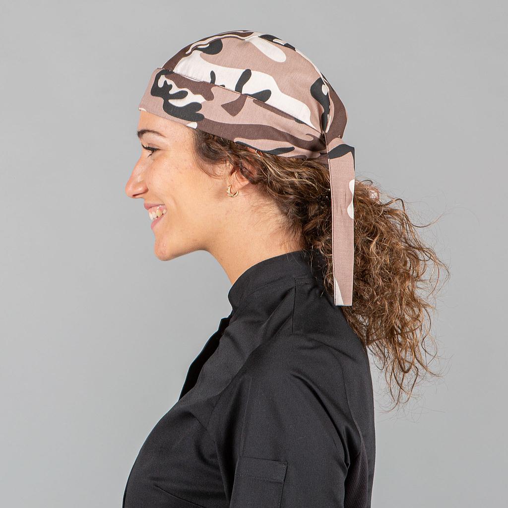 La versatilidad de este accesorio radica en su ajuste trasero mediante tiras para anudar, que garantiza un ajuste perfecto para cualquier usuario. Además, su composición 100% algodón proporciona transpirabilidad y confort durante largas jornadas de trabajo en la hostelería, bares, restaurantes o cualquier entorno de comercio.