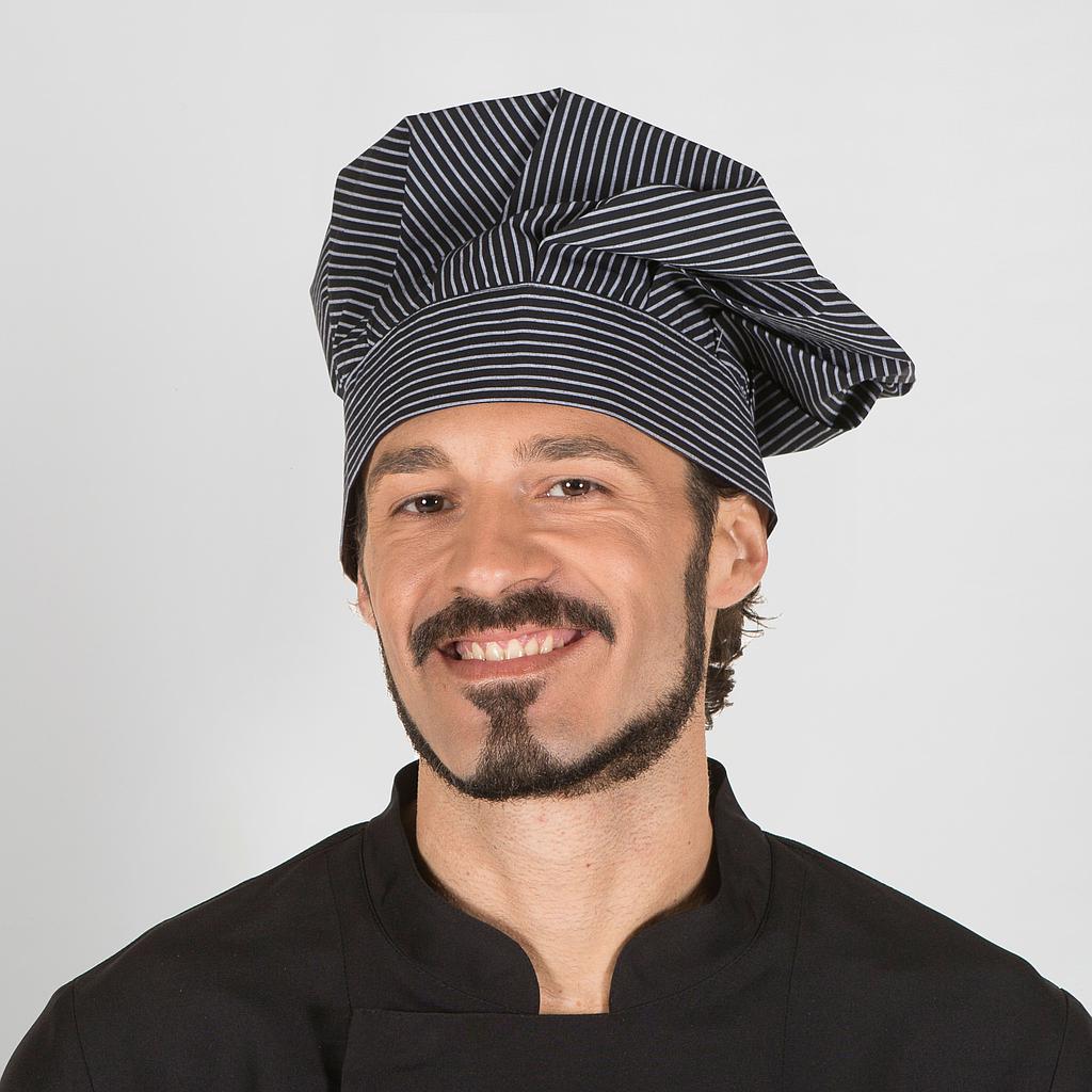 Fusión de estilo y funcionalidad con el Gorro Gran Chef Estampado/Vaquero con Velcro, una pieza esencial para profesionales de la hostelería que desean destacar en la cocina. Este gorro unisex, tipo champiñón, te permite elegir entre distintos estampados de rayas o cuadros en tonalidades grises, aportando un toque de elegancia a tu uniforme.