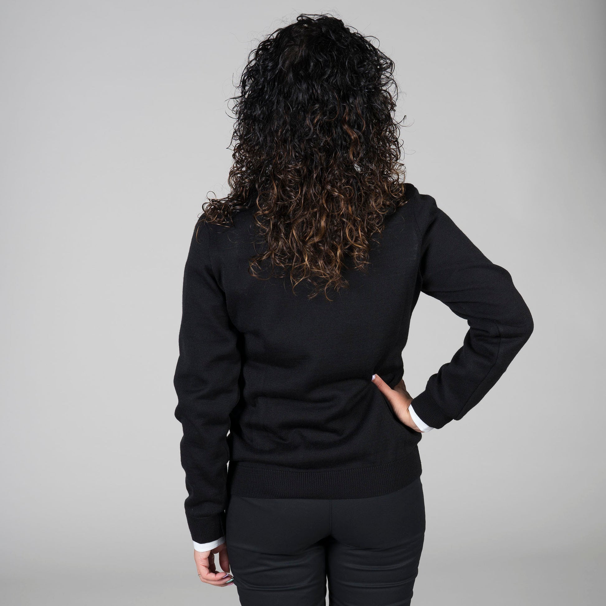 Sabemos que su trabajo puede requerir largas jornadas de actividad constante. Por eso, hemos seleccionado una mezcla de punto acrílico y lana merino para la confección de este jersey. Esto asegura una comodidad excepcional que le permitirá sentirse fresca y confiada durante todo el día.
