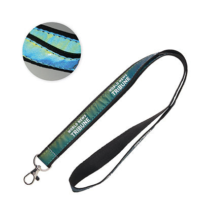 Nuestros lanyards iridiscentes personalizados están fabricados en poliéster de alta calidad con una capa especial iridiscente que refleja diferentes tonos bajo la luz, creando un efecto único en las fotos con flash.