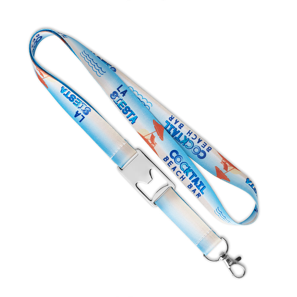 Fabricados en poliéster fino, cuentan con abridor de botellas integrado y un mosquetón metálico, o si lo prefieres, puedes elegir entre varias opciones de clip según tus necesidades.