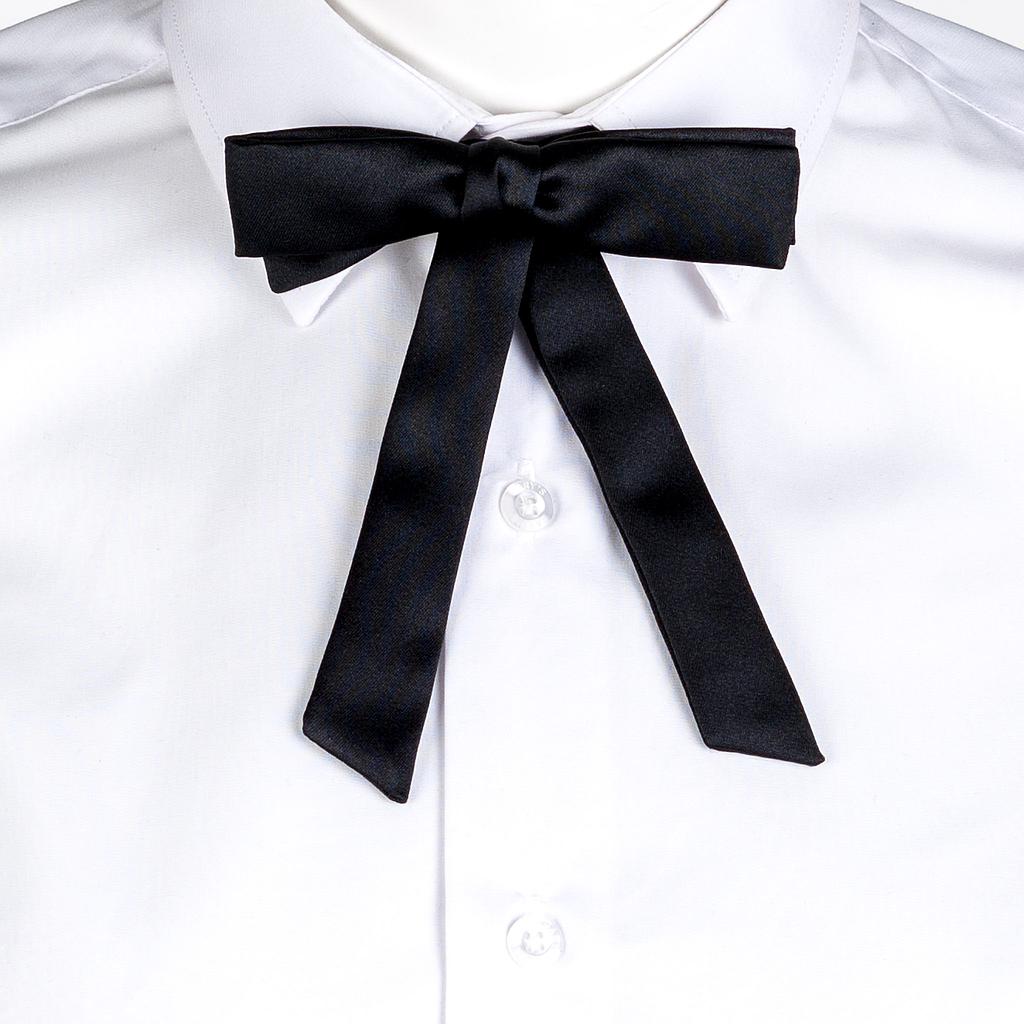 Este lazo está confeccionado en suave y brillante raso de color negro, que agrega un toque de elegancia y sofisticación a tu uniforme.