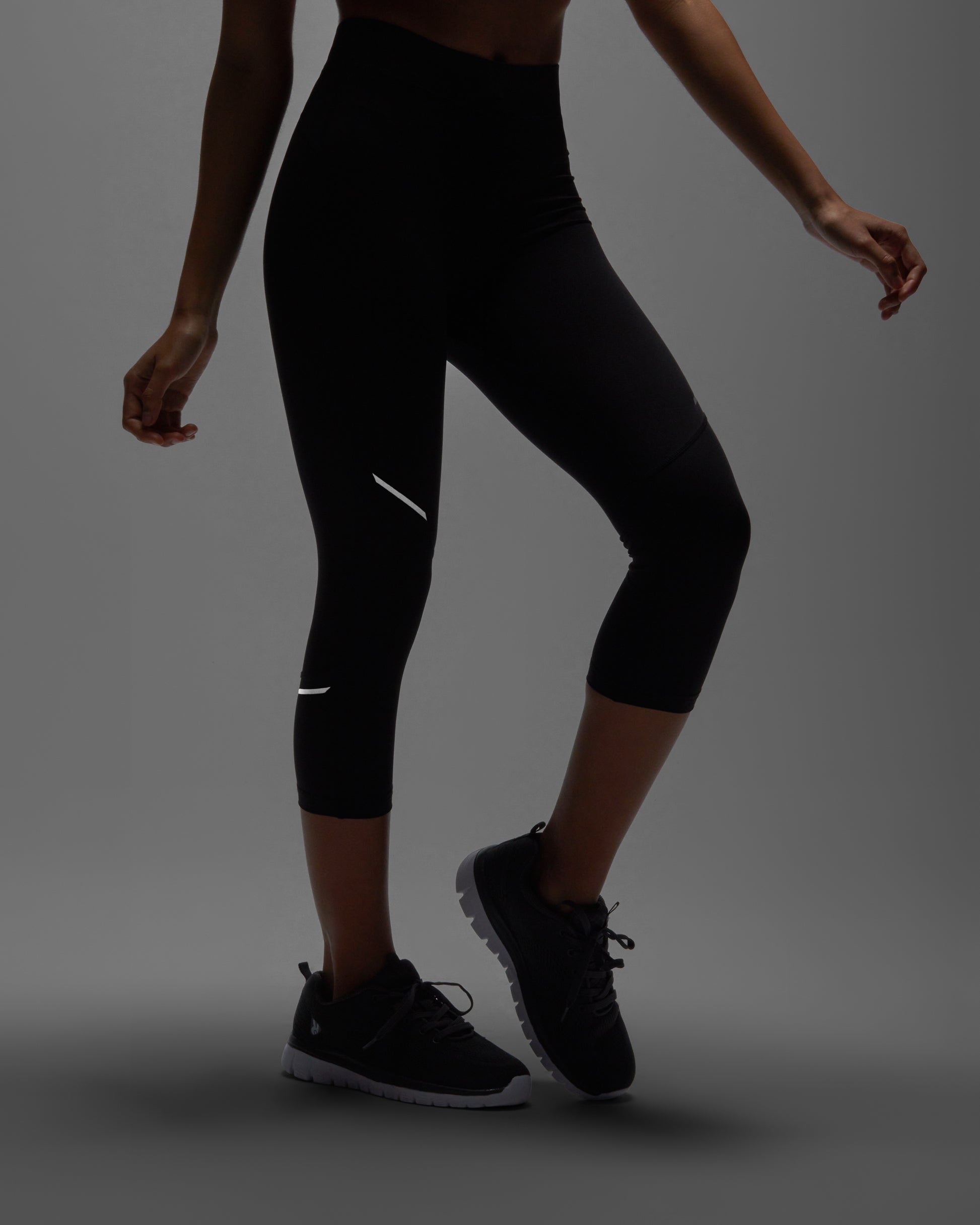 Malla deportiva de mujer a media pierna. Cinturilla elástica y cordón interior cruzado para facilitar el ajuste. Detalles reflectantes. Bolsillo exterior trasero con cremallera.