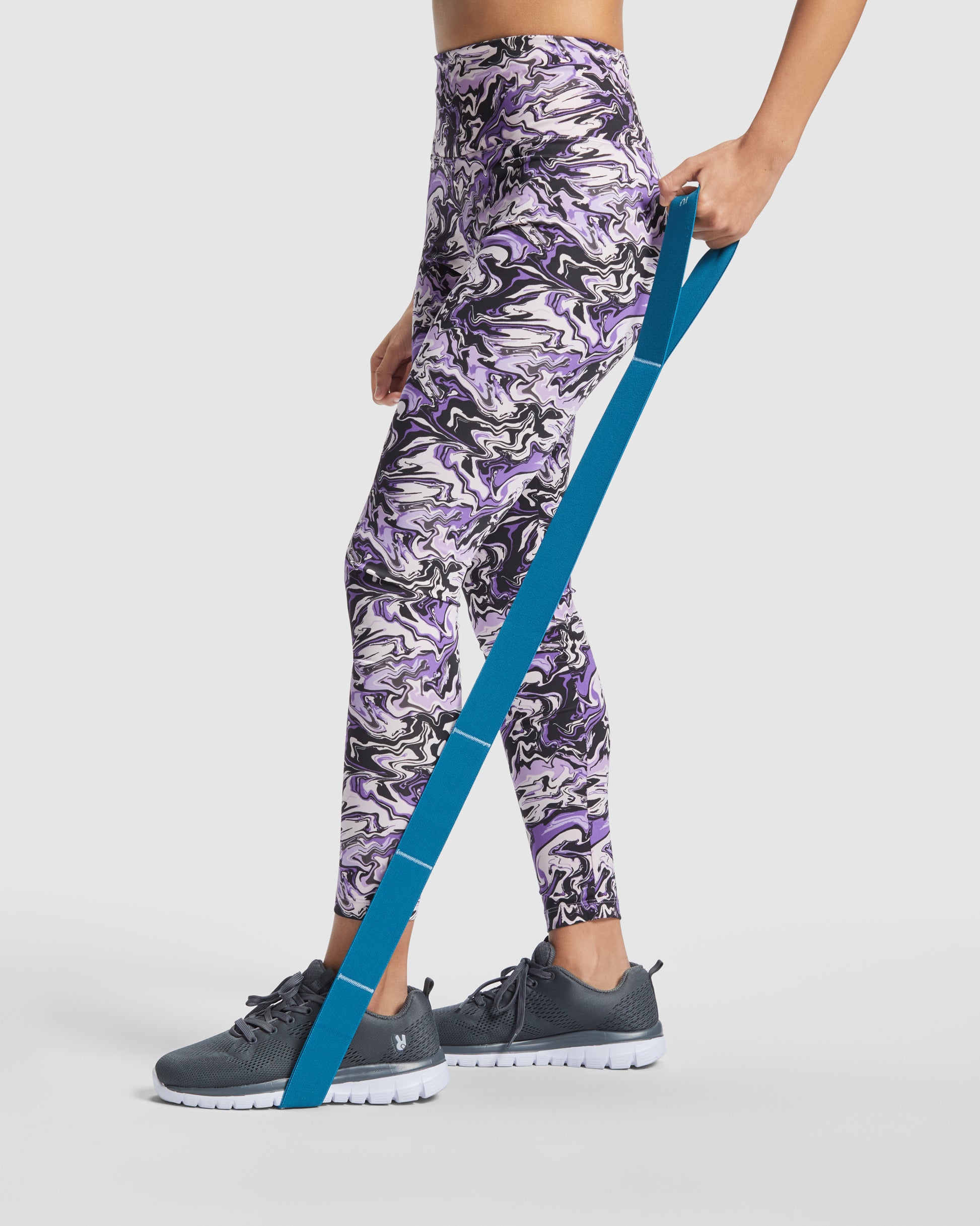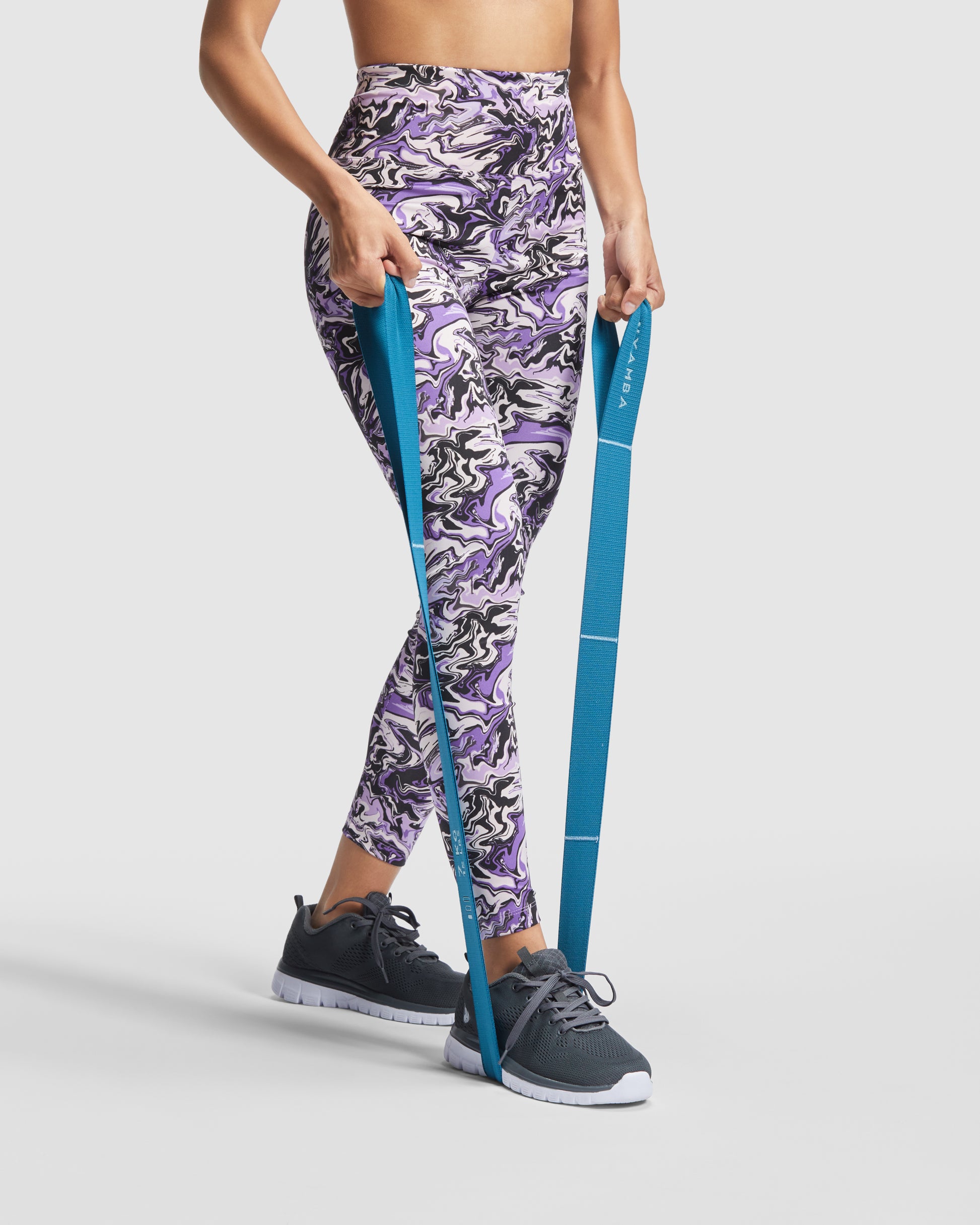 Malla tobillera deportiva de mujer estampada. Cintura alta ajustable. Bolsillo trasero en cinturilla con banda reflectante.