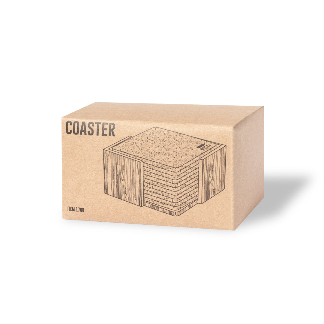 Set de 10 posavasos de línea nature. Fabricados en fieltro RPET reciclado, fruto de la combinación del proceso de reciclaje de materiales plásticos junto con la técnica milenaria de fabricación del fieltro, dando como resultado un material de eco-tendencia que, además de ser de origen reciclado, también se convierte en reciclable. Soporte fabricado en bambú y posavasos con distintivo RPET. Set presentado en caja individual de diseño kraft.