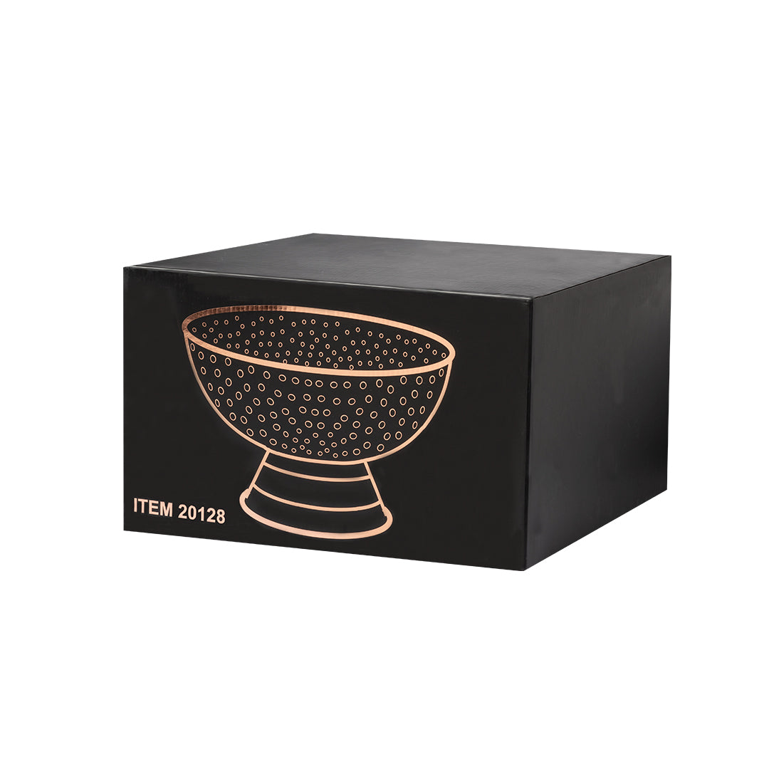 Elegante champanera fabricada en acero inoxidable con recubrimiento de cobre galvanizado. Capacidad de 8,5 l. Con original diseño en acabado brillo, es un perfecto accesorio para presentar con estilo las bebidas frías. Presentada en una exclusiva caja individual de diseño negra.