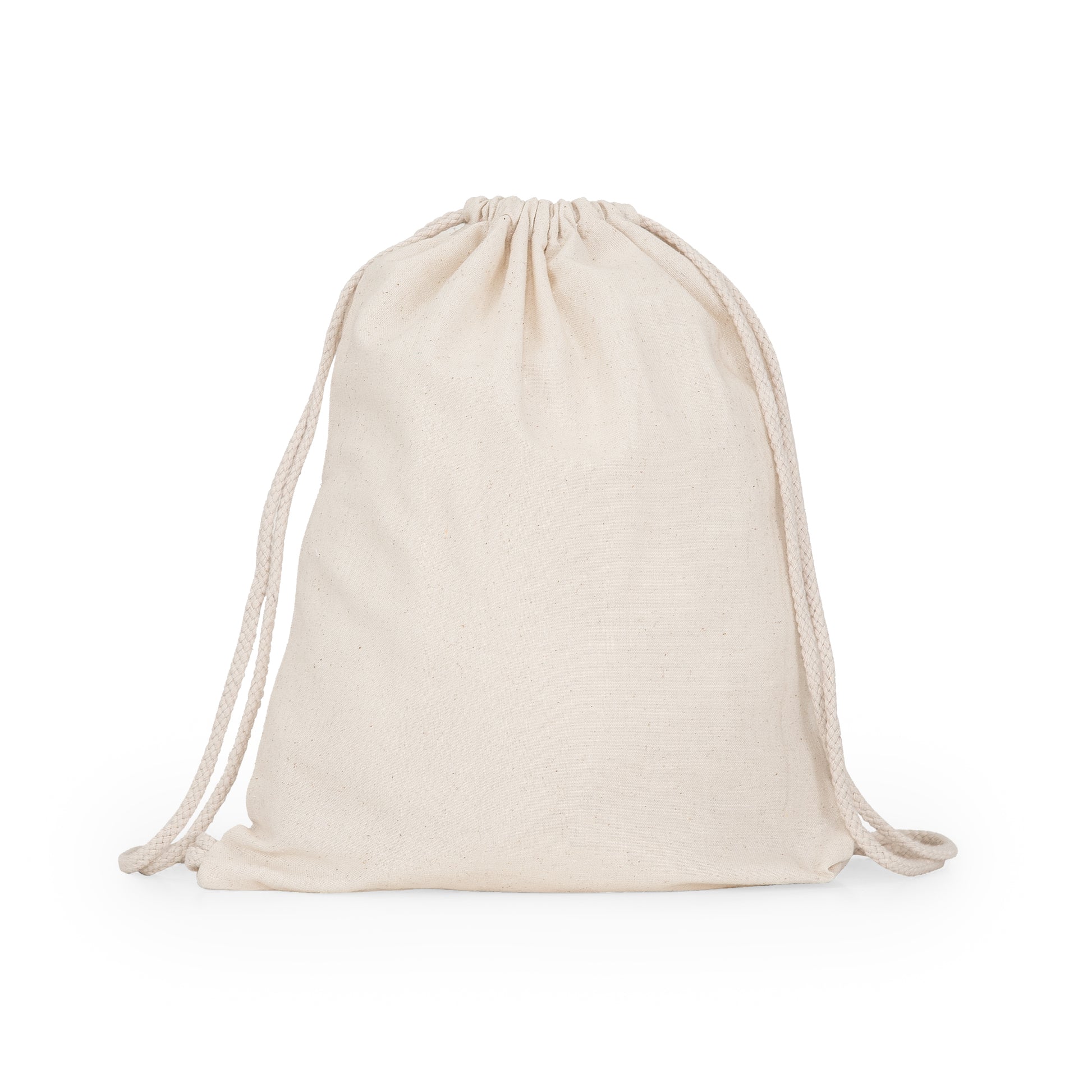 Mochila multiusos de algodón. Cordones de ajuste a la espalda a tono, de 8 mm de grosor.