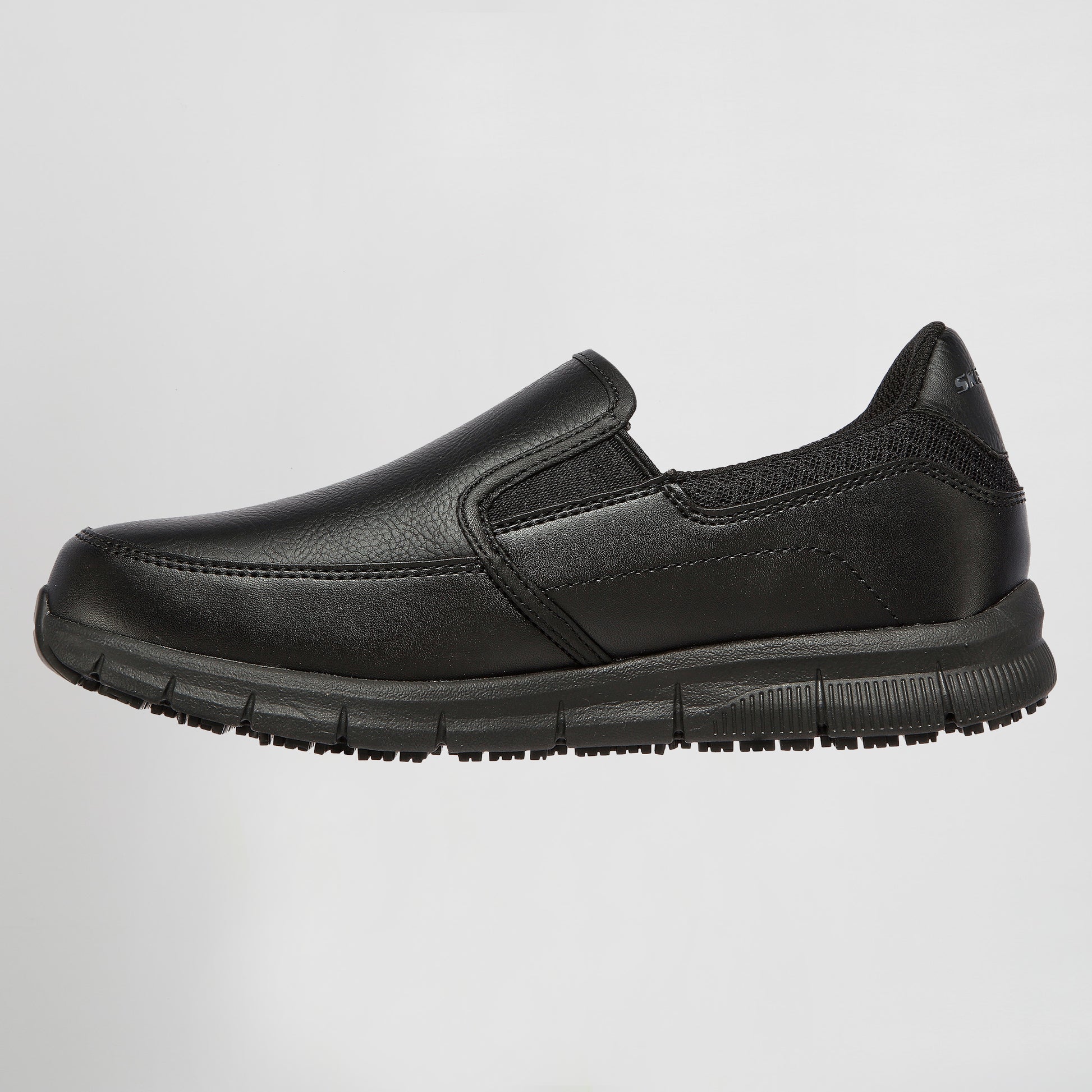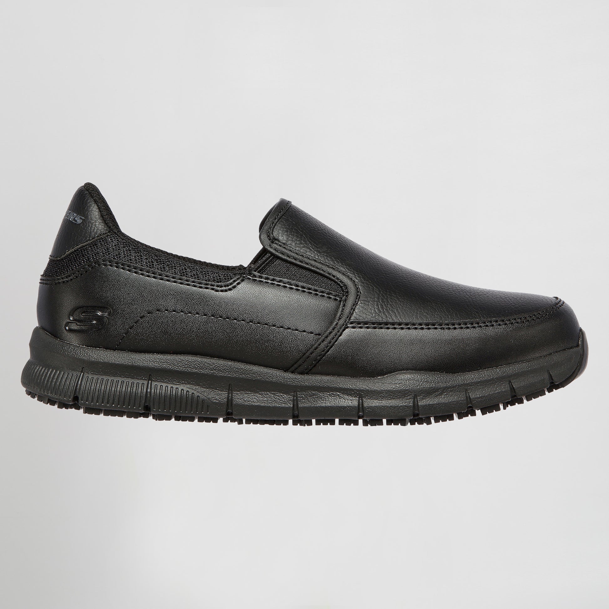 Ten un turno cómodo y seguro cada día con el zapato SKECHERS Work Relaxed Fit®: Nampa - Annod SR. Parte superior sintética con textura de piel lisa en calzado informal, cómodo y antideslizante con detalles de costuras y plantilla Memory Foam.