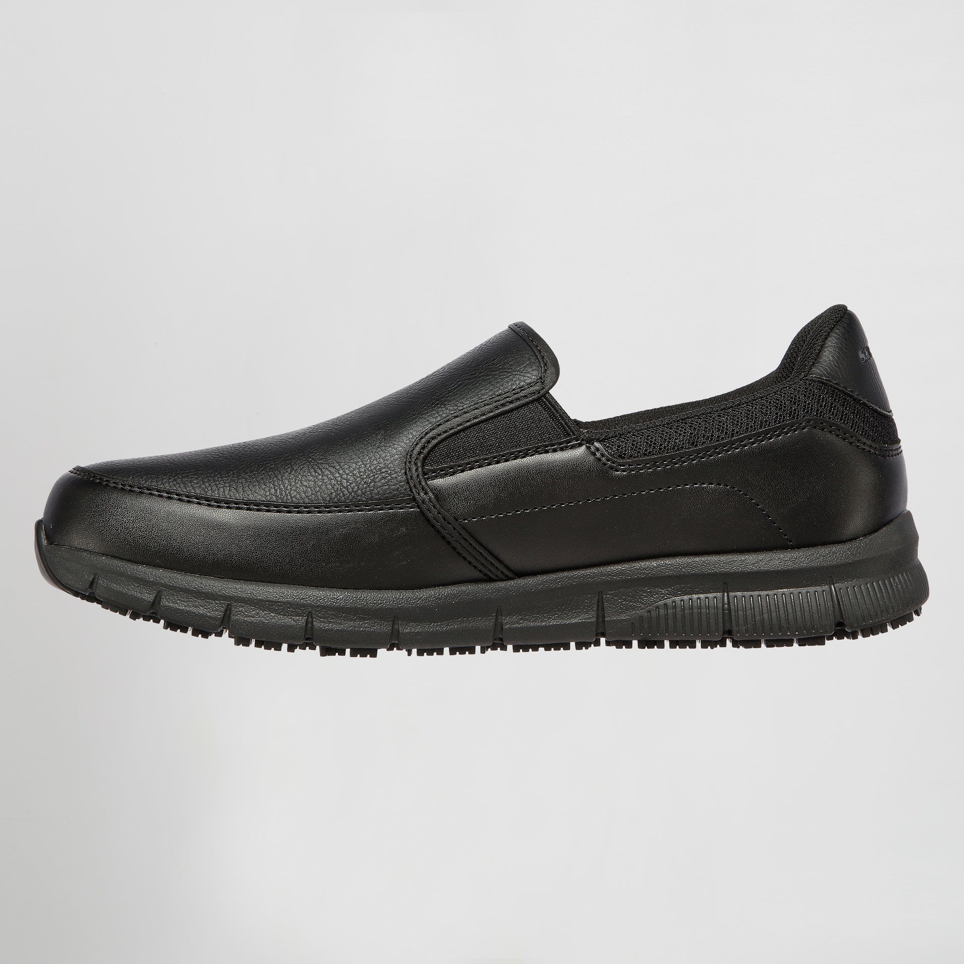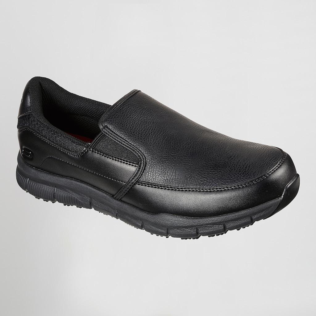 Trabaja de forma más inteligente y cómoda con el calzado Skechers Work Relaxed Fit®: Nampa - Groton SR. Esta zapatilla antideslizante cuenta con una parte superior sintética suave sin cordones con plantilla acolchada de espuma viscoelástica y protección contra riesgos eléctricos.
