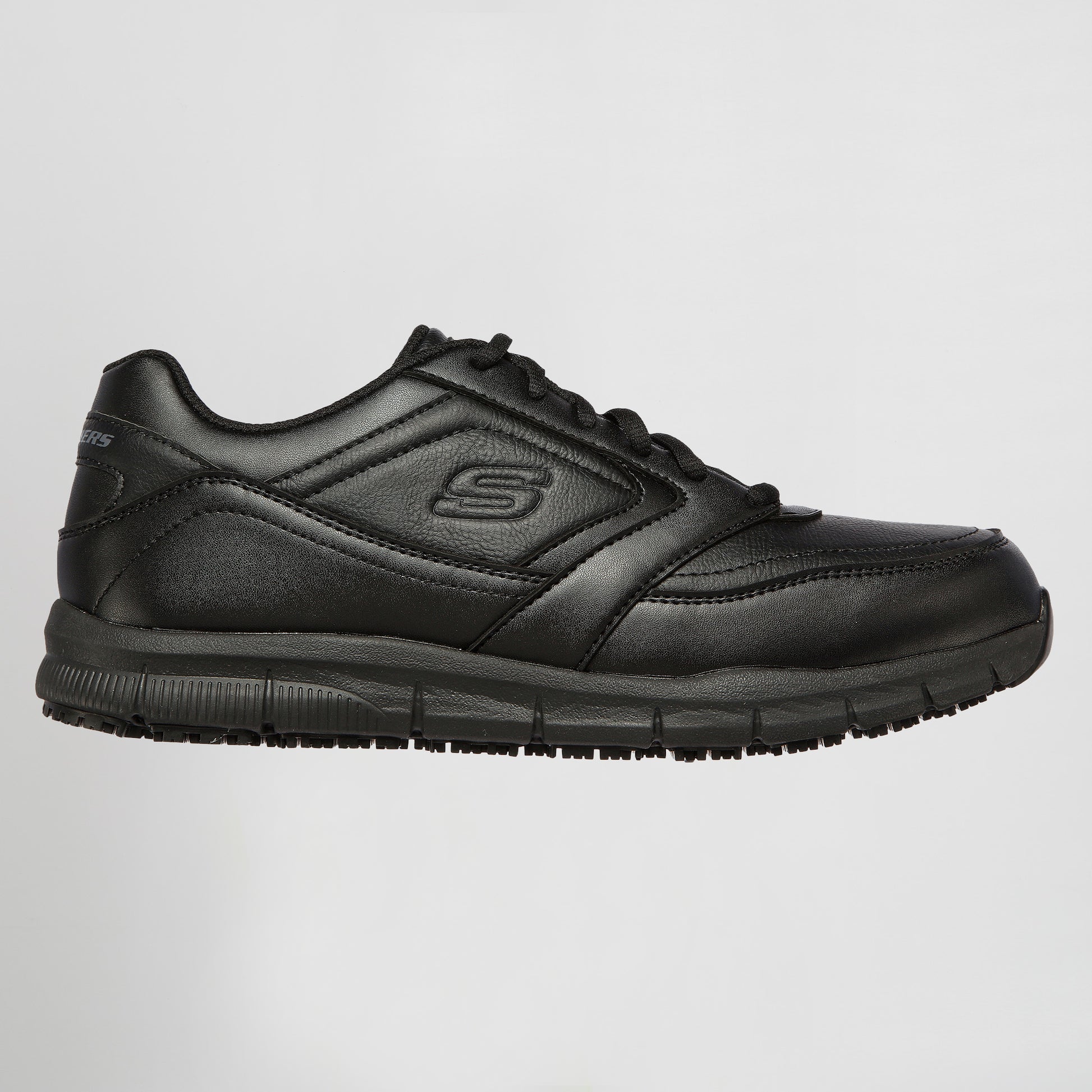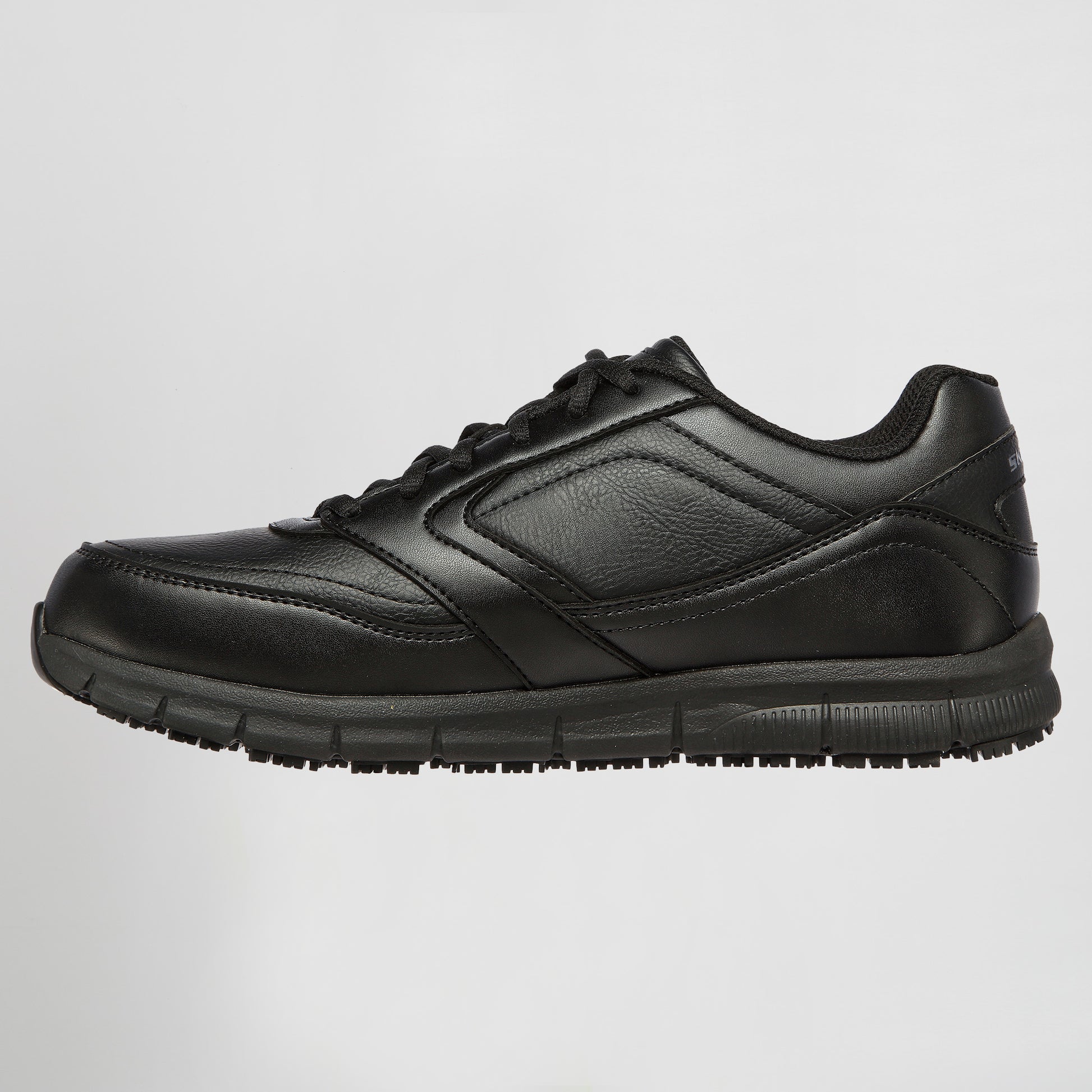Asegure su comodidad y estilo atractivo usando el zapato SKECHERS Work Relaxed Fit®: Nampa - Wyola SR. Parte superior sintética con textura de piel lisa en una zapatilla deportiva casual, cómoda y antideslizante con cordones, detalles de costuras y plantilla Memory Foam.