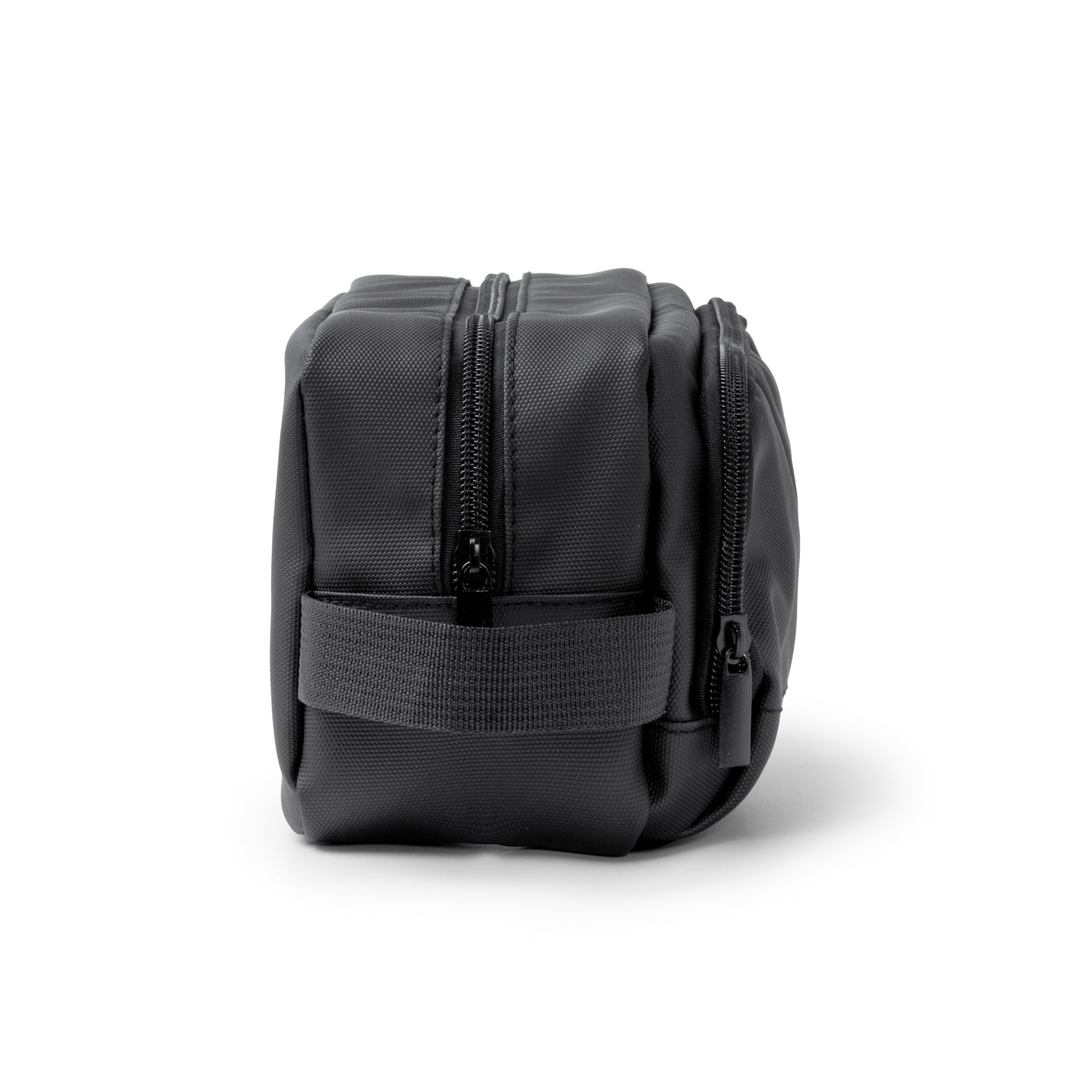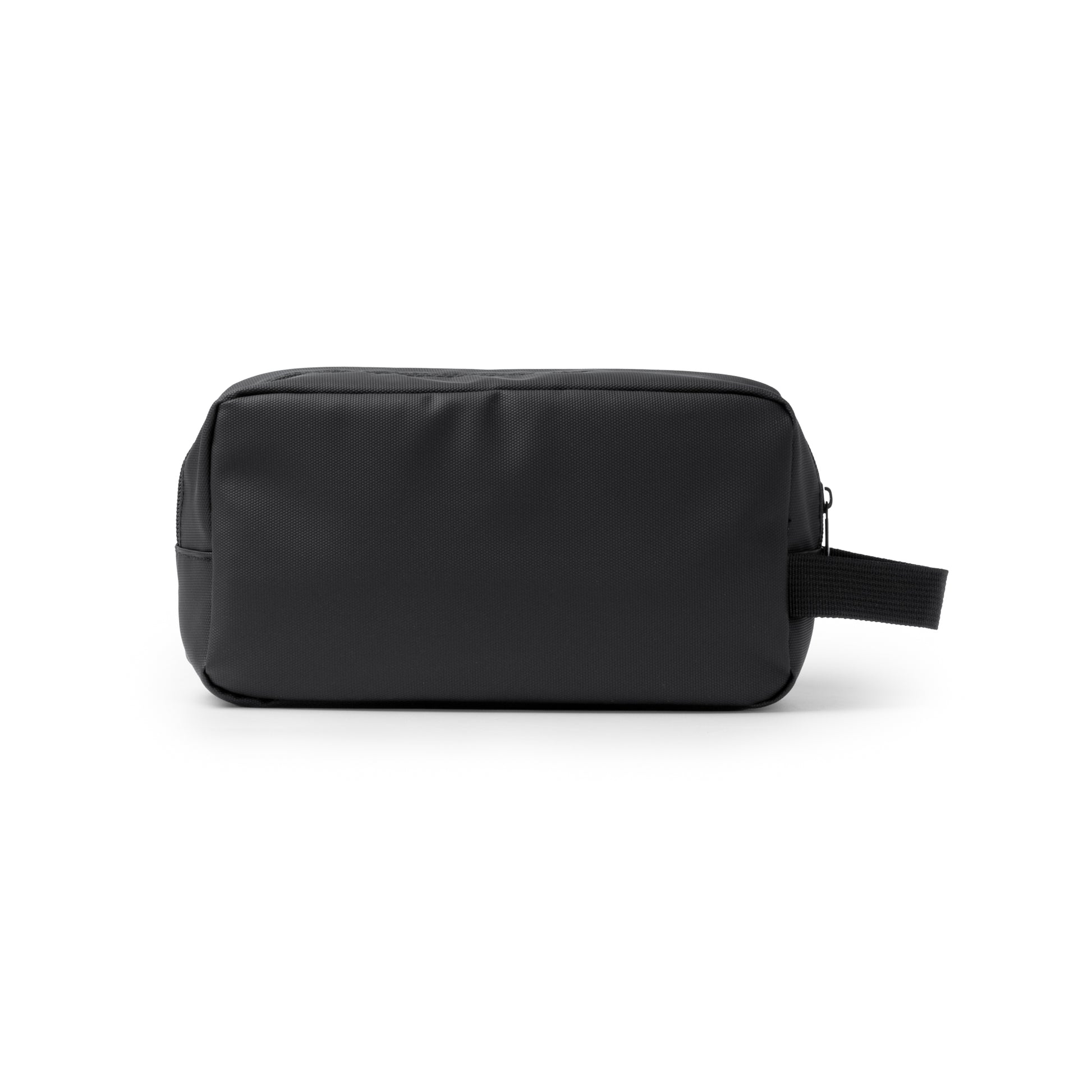 Neceser de PU Leather con doble compartimento y cierre de cremallera, ideal para organizar artículos de aseo personal de manera segura y elegante. Incluye asa de transporte.