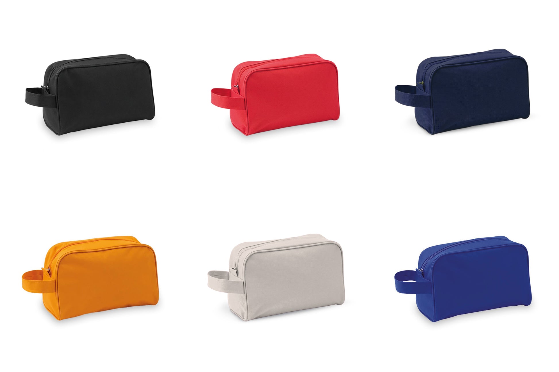 Neceser multiusos en resistente poliéster 600D de vivos colores. Con cremallera, asa de transporte y ribete de refuerzo a juego.