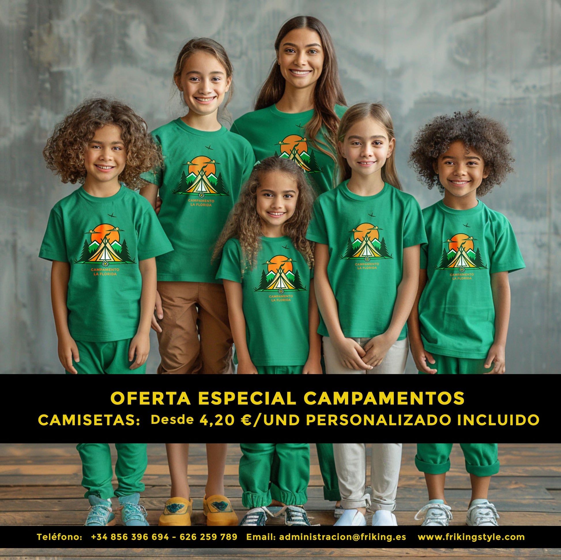 En Friking Style, entendemos la importancia de que cada campamento de verano tenga su propia identidad. Por eso, te ofrecemos camisetas personalizadas de alta calidad, perfectas para tus actividades y eventos. ¡Y lo mejor de todo es que no necesitas pedir grandes cantidades! ¡Puedes pedir desde una sola unidad!