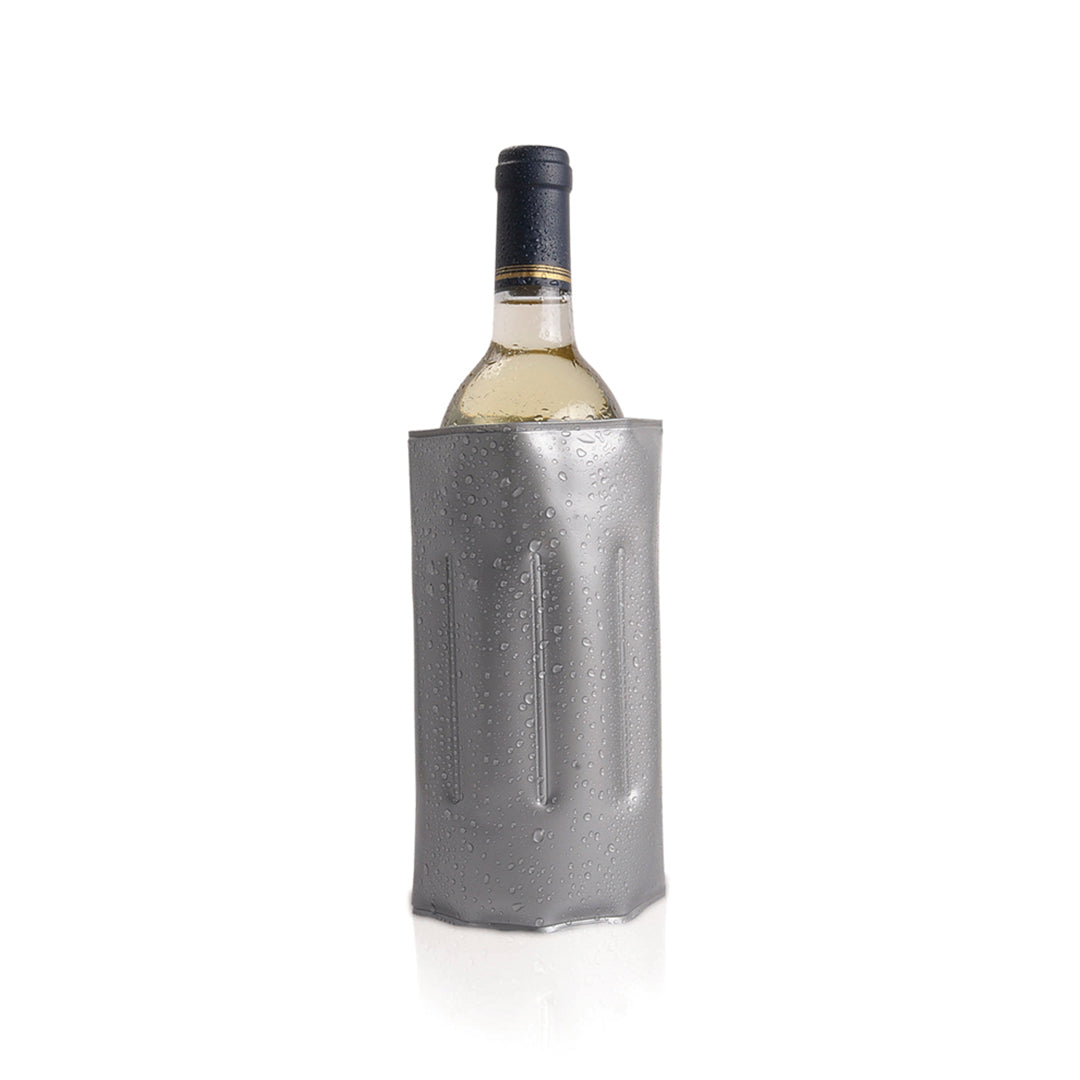 Enfriador para botellas fabricado en resistente PVC, con cierre ajustable de velcro. Líquido refrigerante interior y acabado termo sellado. Disponible en variada gama de colores.