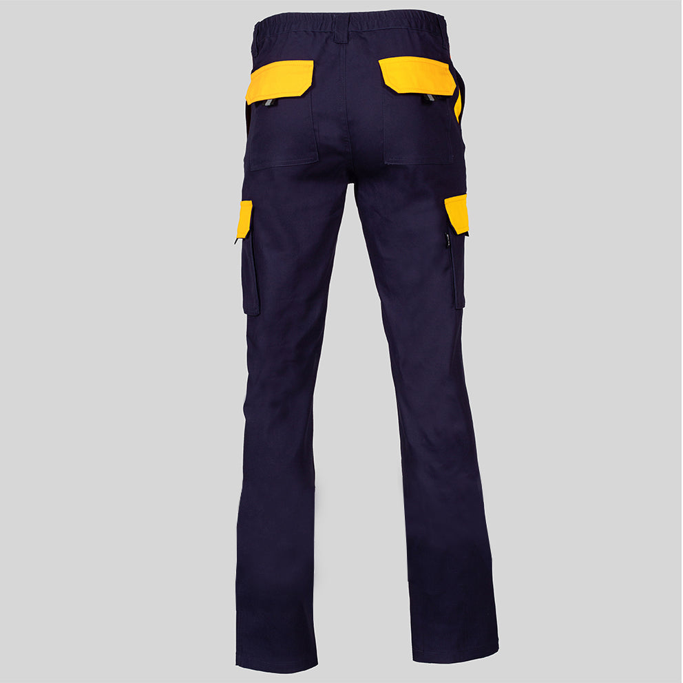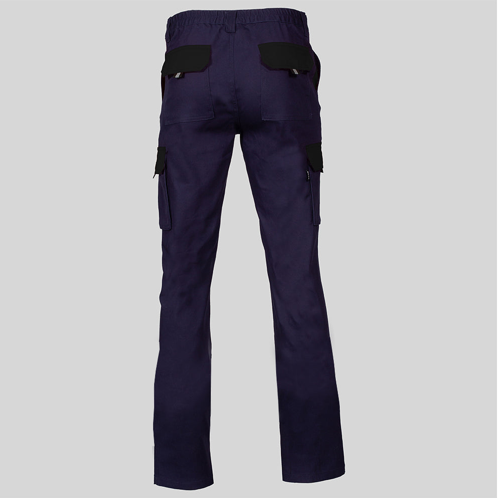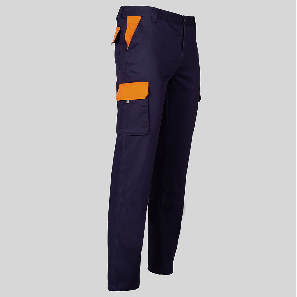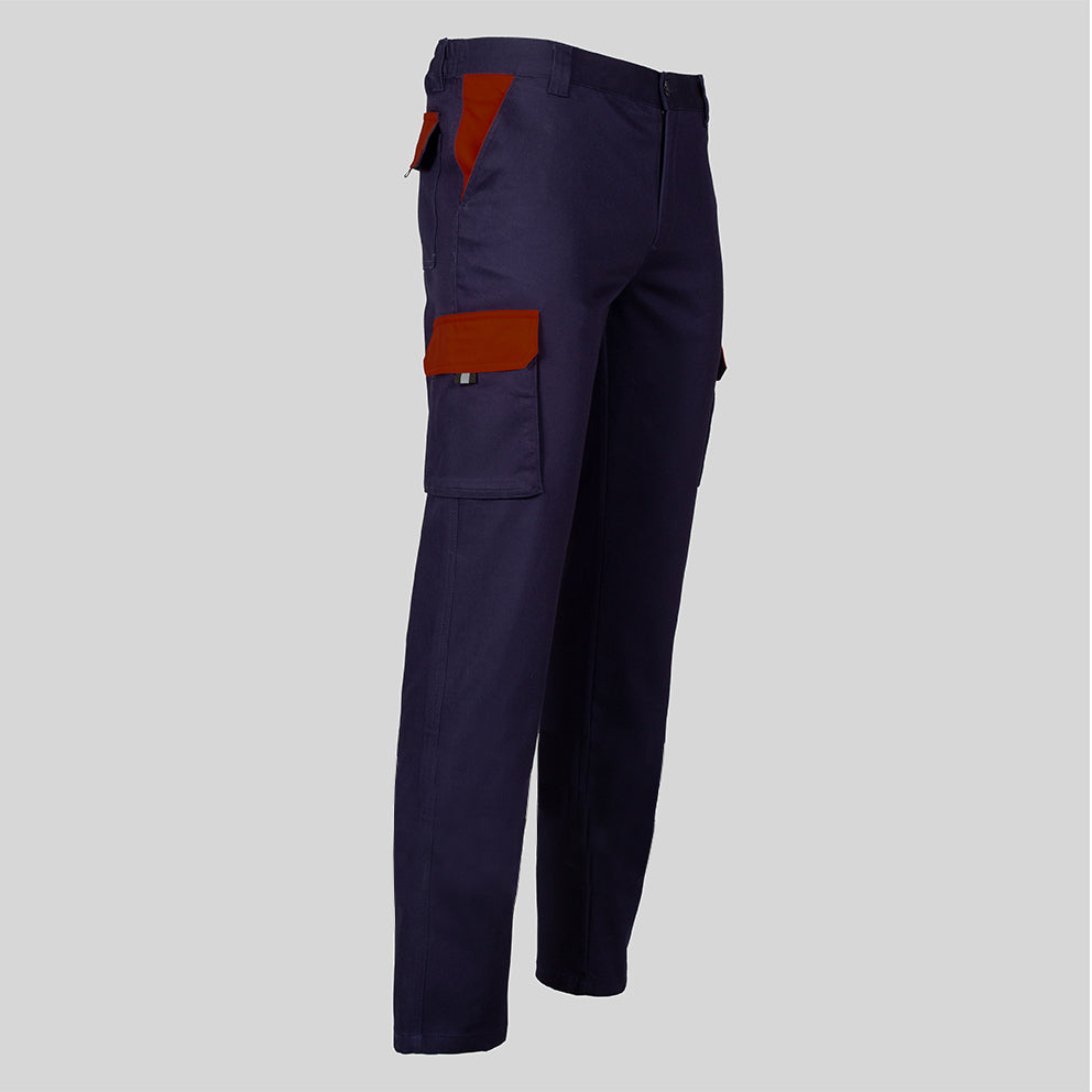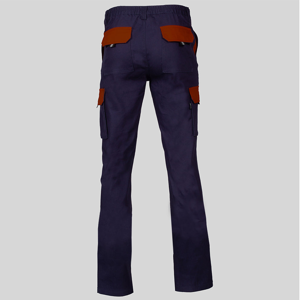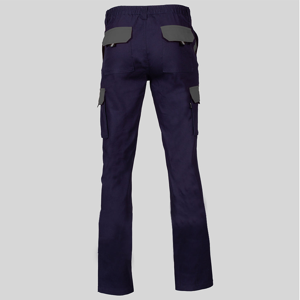 El diseño unisex presenta un tejido hidrofugado compuesto por sarga elástica, proporcionando resistencia, flexibilidad y confort durante largas jornadas de trabajo. La característica elástica garantiza un ajuste cómodo, mientras que los múltiples bolsillos ofrecen practicidad para llevar herramientas y objetos esenciales.