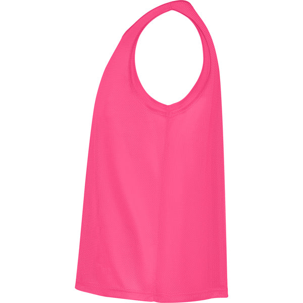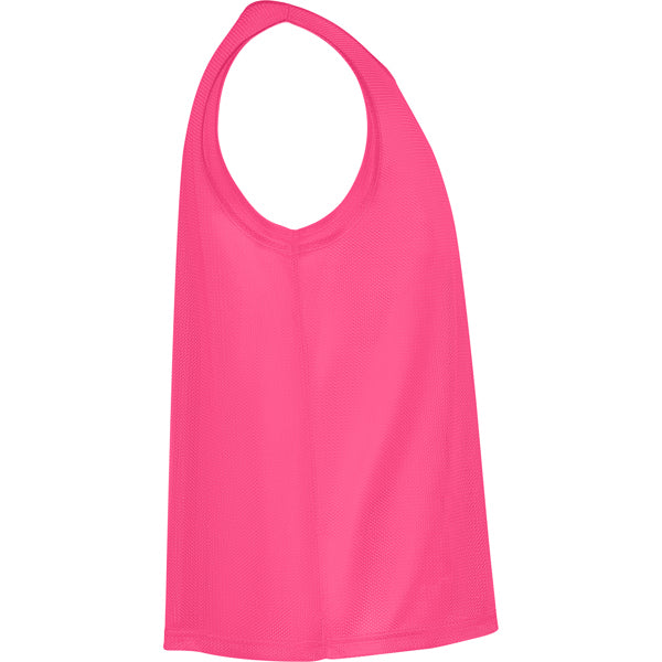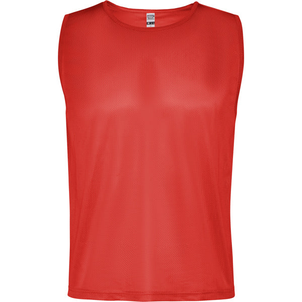 Peto deportivo transpirable unisex. · Vivo en el mismo tejido en sisas y cuello. · Doble pespunte en el bajo.