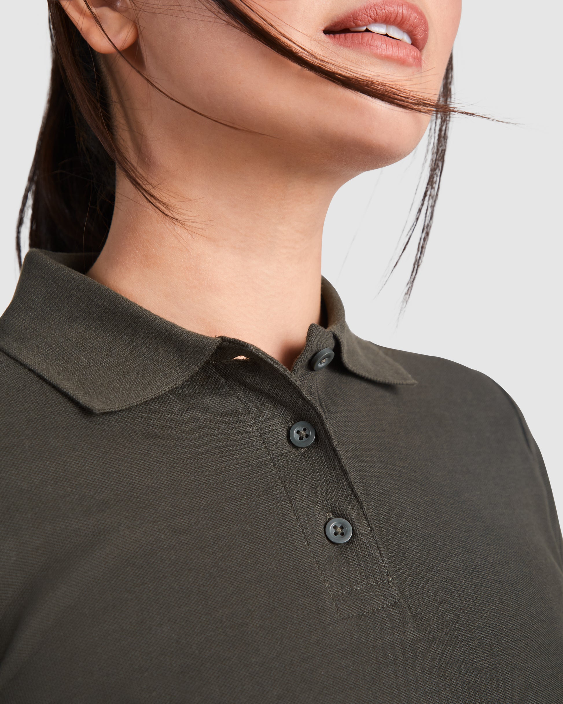 Polo de manga larga con cuello y bocamangas acanalado, tapeta de 3 botones y puños canalé 1x1 con elastano.