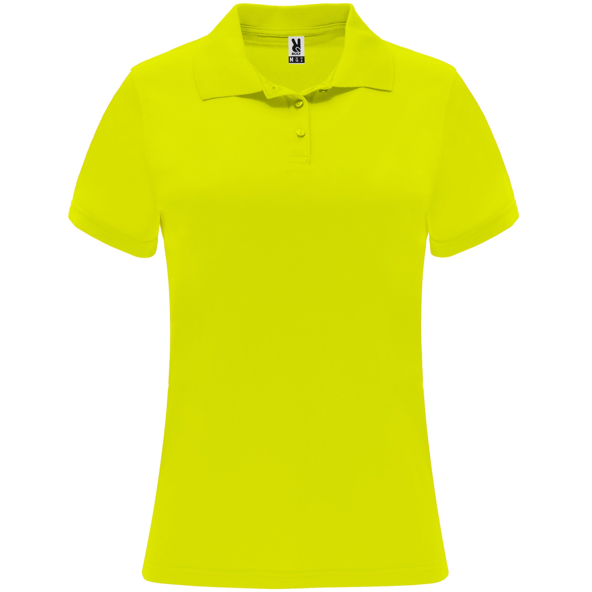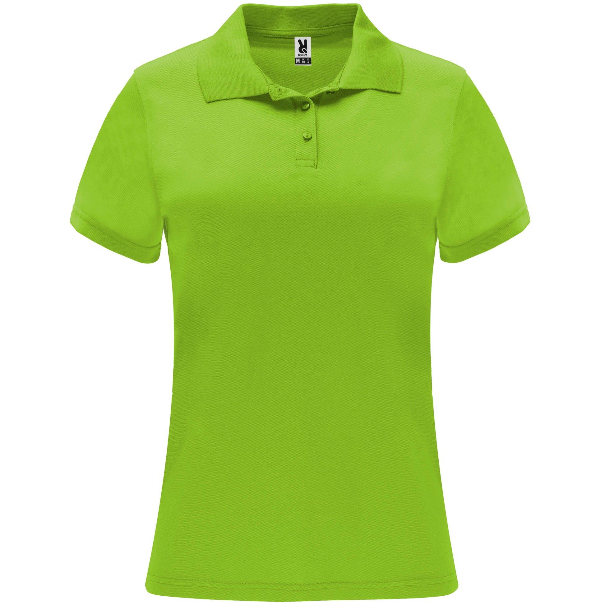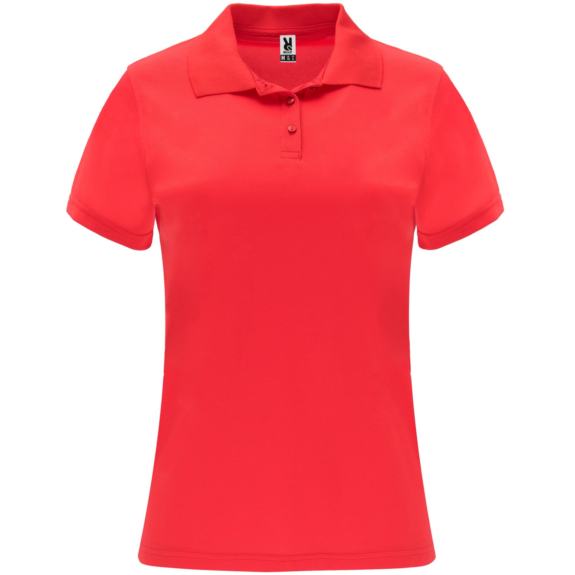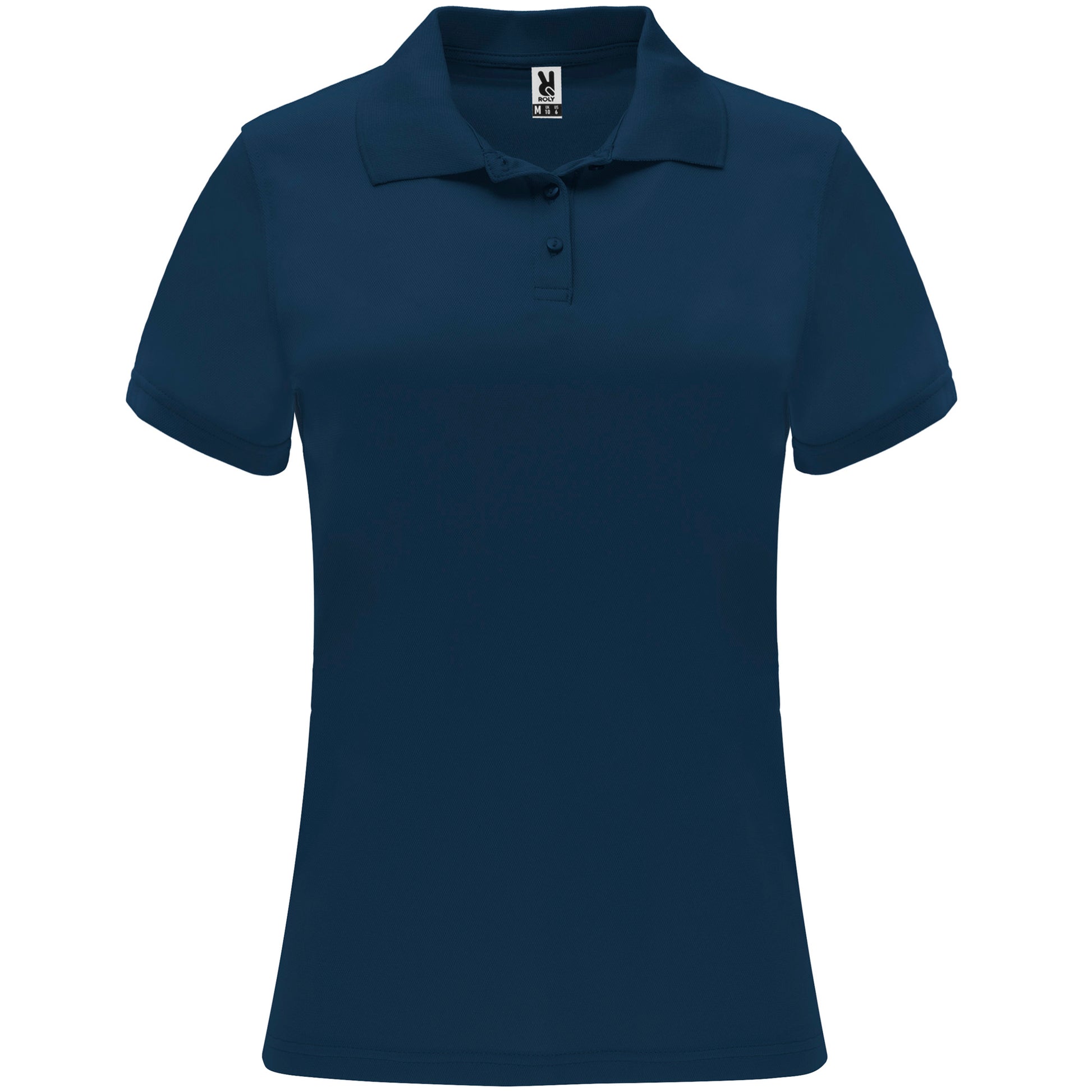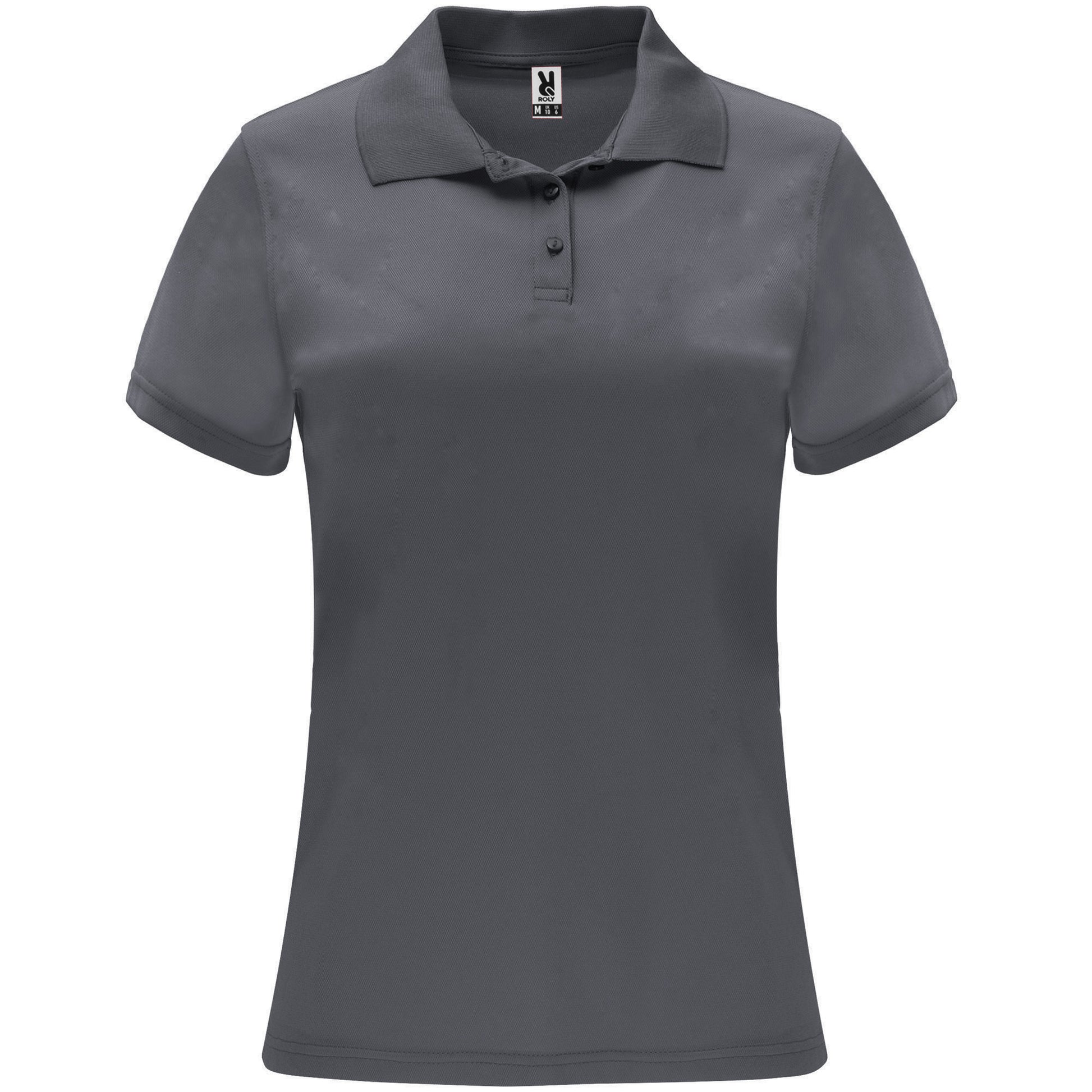 Polo técnico de manga corta para mujer. Cuello tricotosa con tapeta de tres botones. Corte entallado.