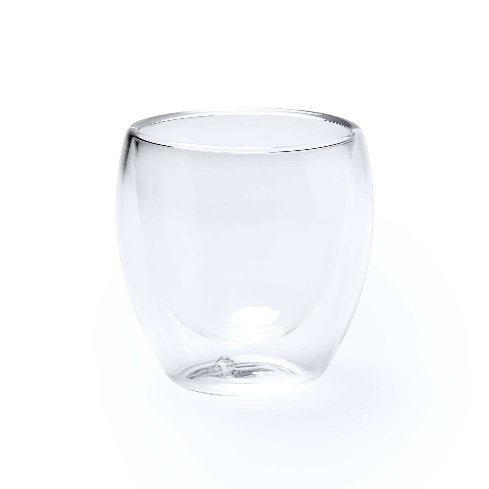Set de 2 vasos de doble pared, realizados en cristal borosilicato. Capacidad 90 ml.