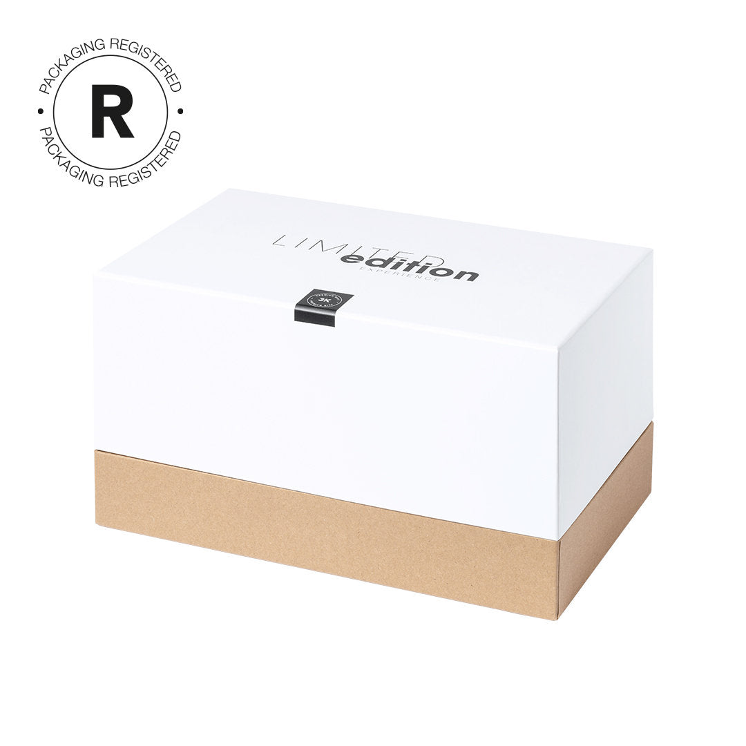 Exclusivo estuche de presentación Limited Edition, con diseño protegido por derechos de propiedad industrial.