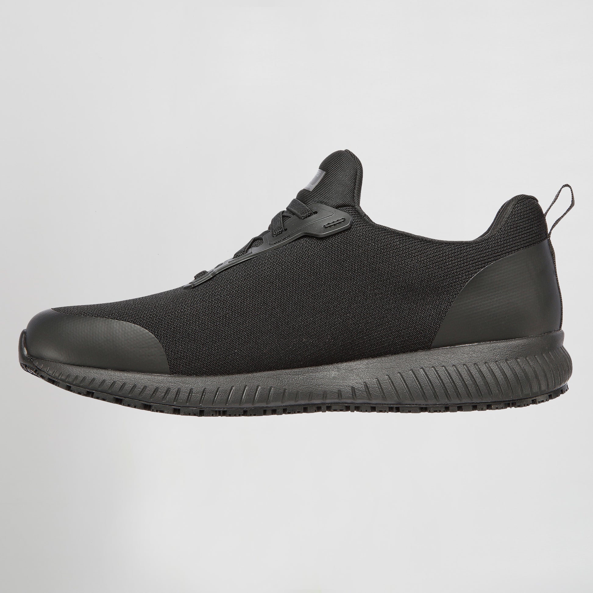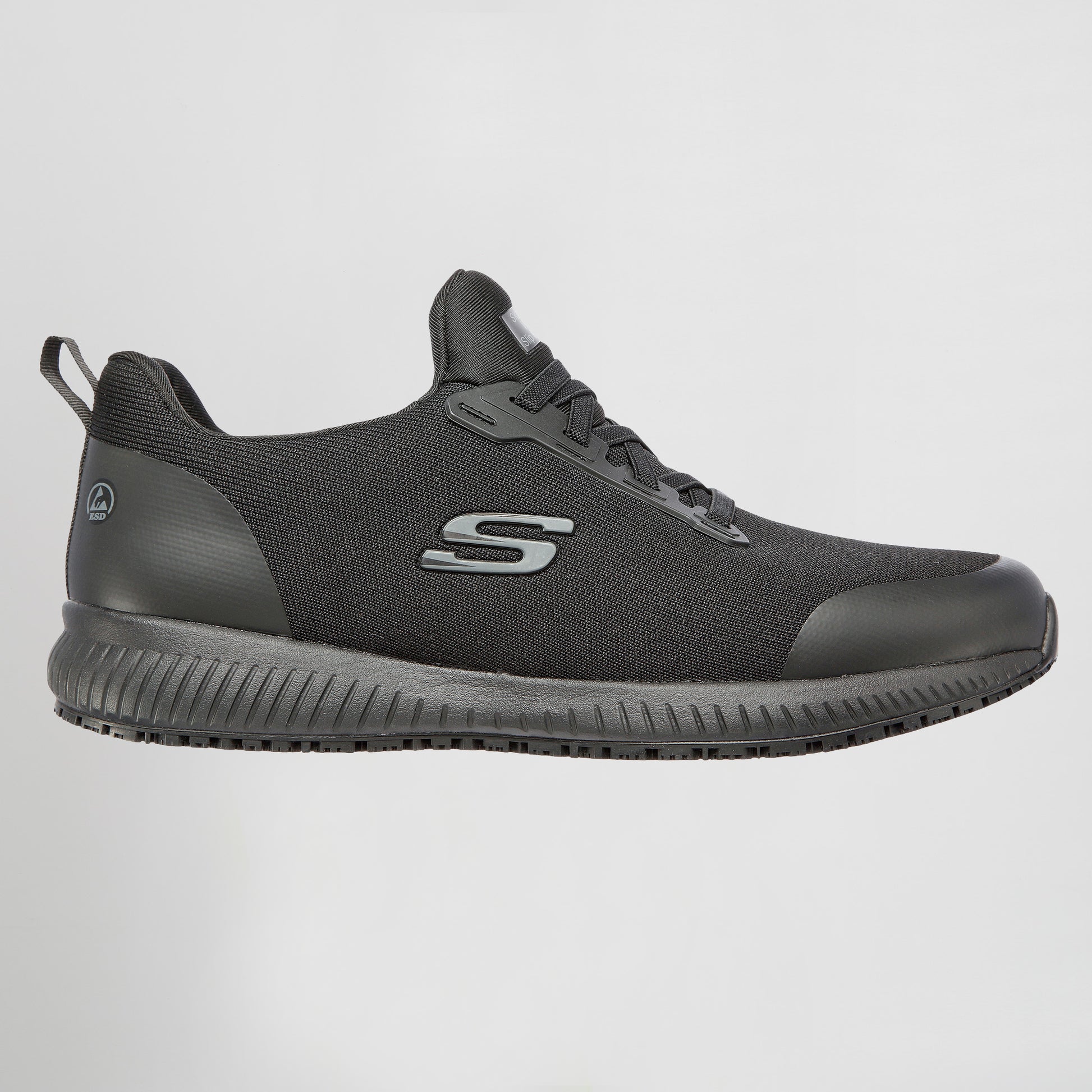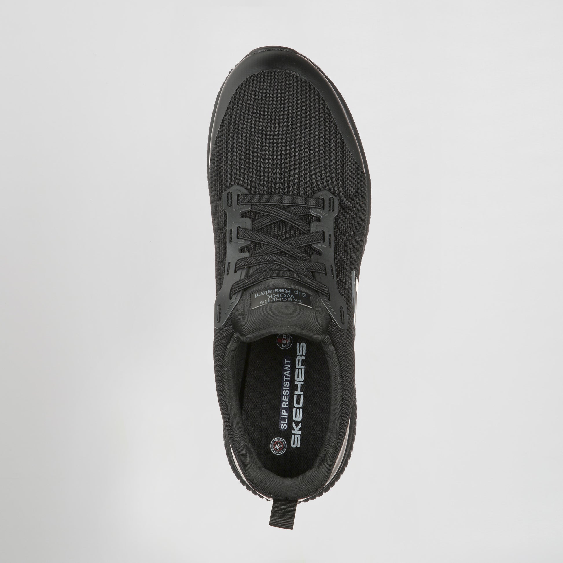 Comodidad y protección con un buen estilo en el zapato Skechers Work: Squad SR. Esta zapatilla antideslizante tiene una parte superior sintética y de malla con un frontal con cordones elásticos y una plantilla acolchada de espuma viscoelástica.