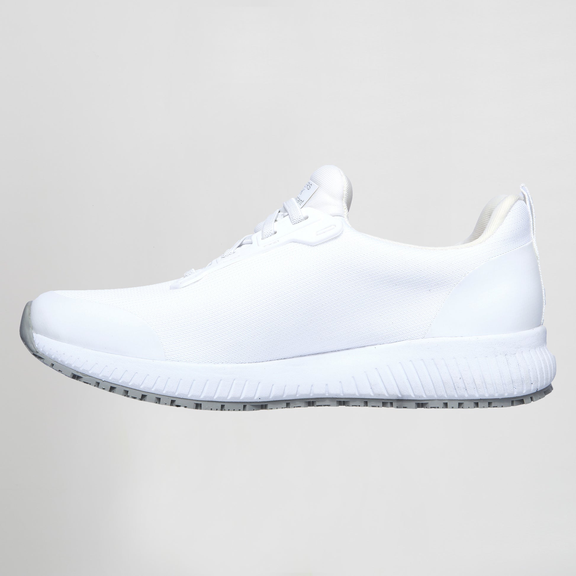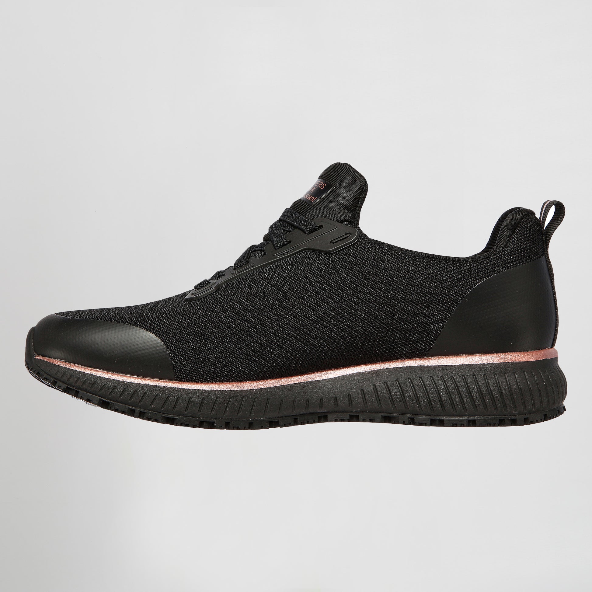 Tu búsqueda de protección y comodidad al fin ha terminado gracias a la SKECHERS Work: Squad SR. Parte superior de tejido sintético y malla de punto en una zapatilla deportiva de estilo casual. Con cordones elásticos, detalles de costuras, suela antideslizante perfecta para el trabajo y plantilla SKECHERS Memory Foam.