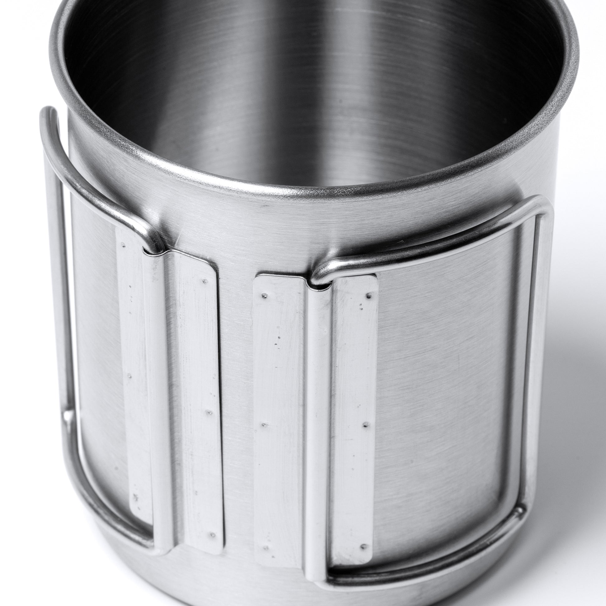 Taza de acero inoxidable 304 con asas plegables. Capacidad 450 ml. Idónea taza para acampada o aventura. 39-85R.