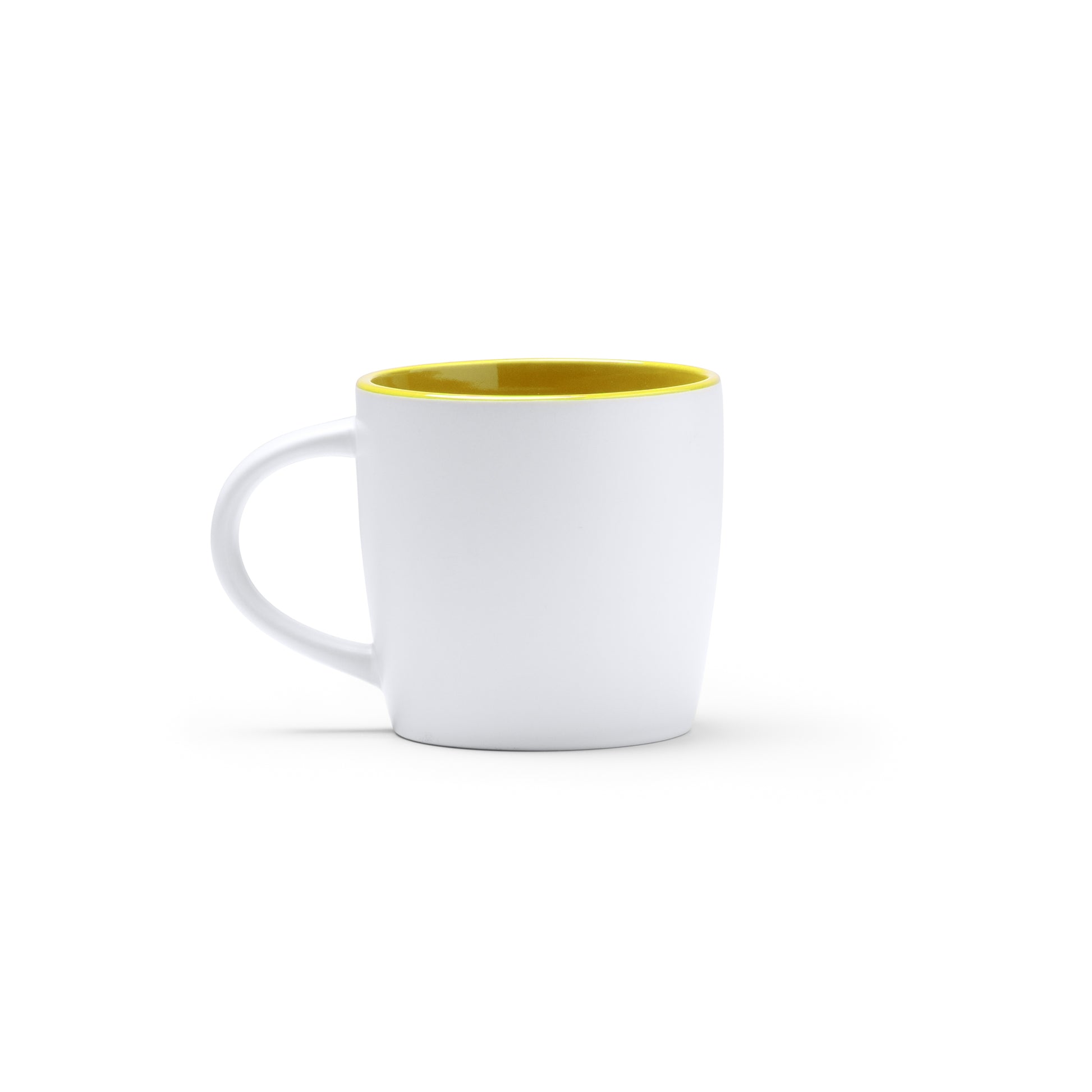 Taza de cerámica de 370 ml. Interior a color y exterior en blanco.