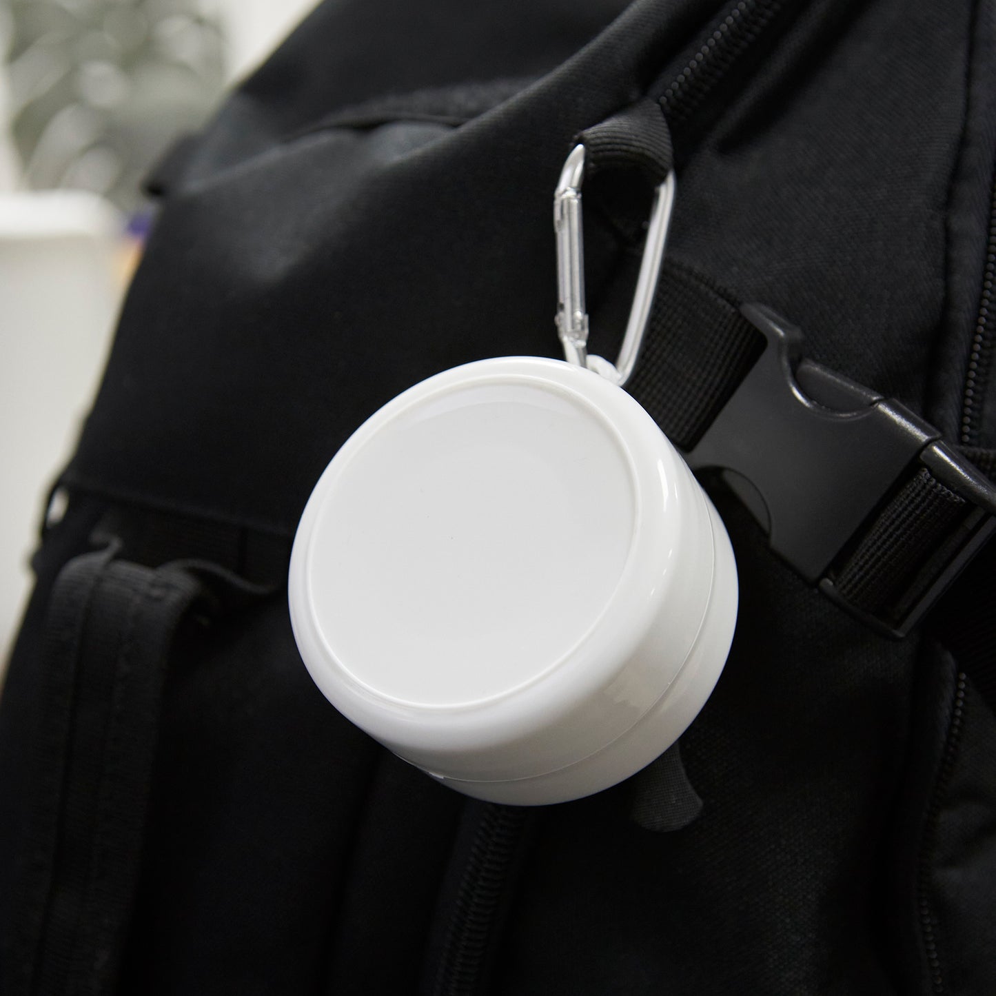 Vaso plegable anti-bacterias con tapa y mosquetón plateado de transporte. 220 ml. de capacidad. 40-64R