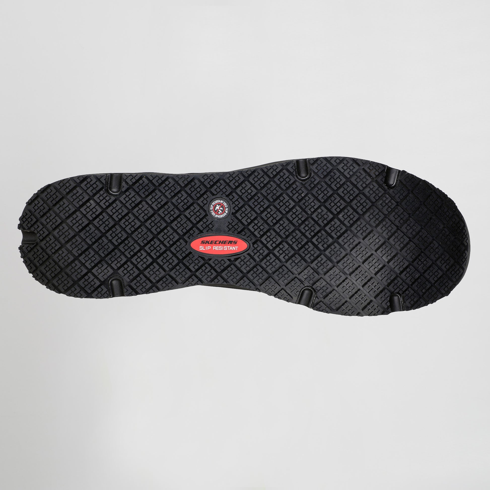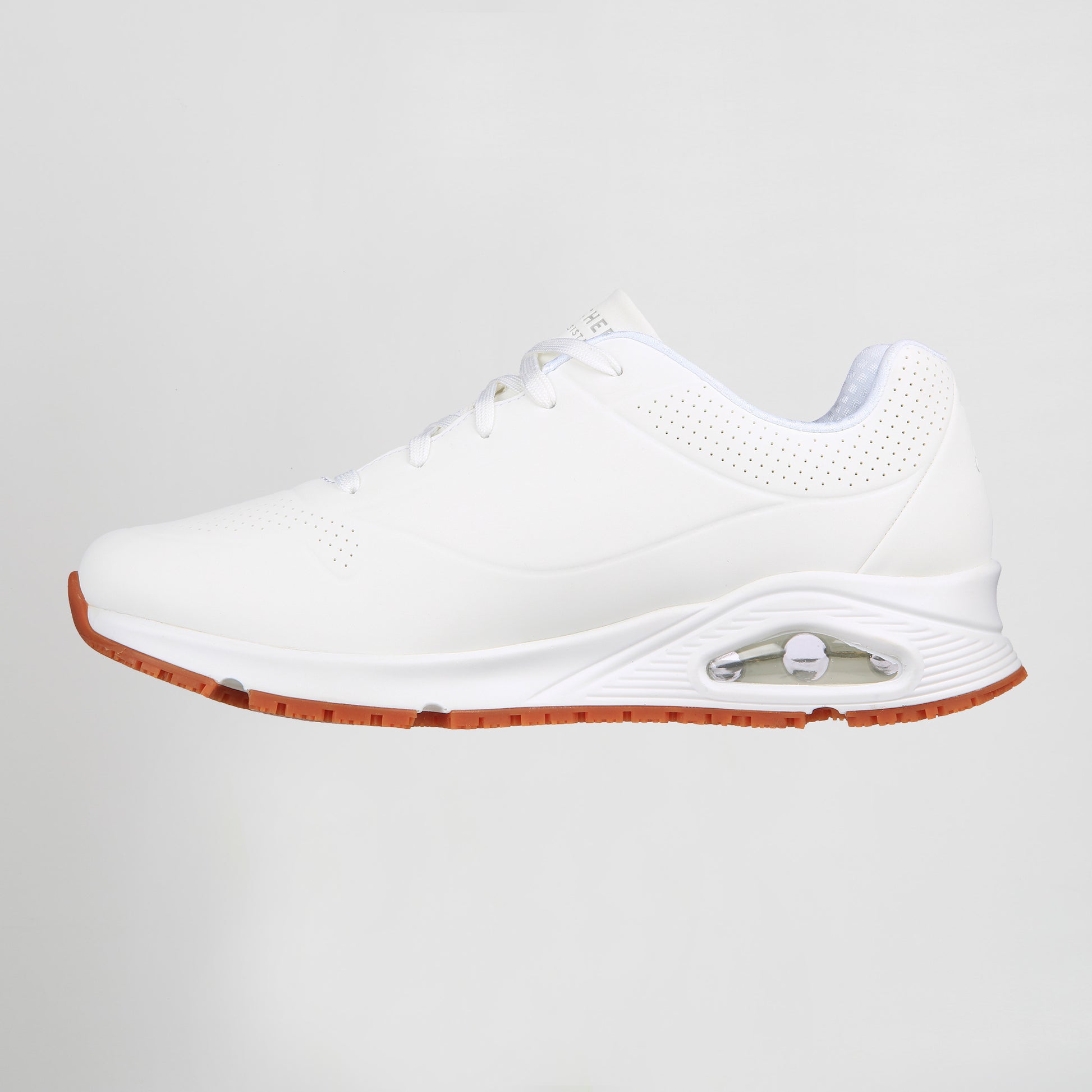 Comodidad, estilo y seguridad se combinan facilmente en Skechers Work Relaxed Fit: Uno SR. Éste diseño de trabajo antideslizante cuenta con una parte superior duradera de "durabuck" sintético perforado, una plantilla Skechers Air-Cooled Mamory Foam y una entresuela con cámara de aire visible Skech-Air.